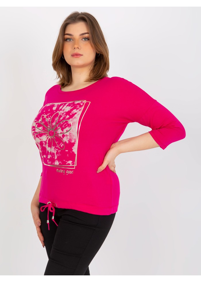 Dámske tričko s potlačou, okrúhly výstrih, 3/4 rukávy, šnúrka v spodnej časti, univerzálna veľkosť, miery modelky: výška: 176 cm, prsia: 111 cm, pás: 82 cm, boky: 114 cm, rozmer produktu meraného na plocho:, šírka pod plecami: 60 cm, dĺžka rukáva: 44 cm, celková dĺžka: 62 cm.