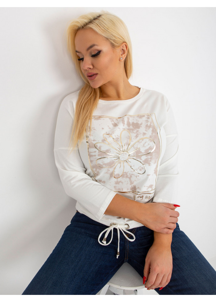 Dámske tričko s potlačou, okrúhly výstrih, 3/4 rukávy, šnúrka v spodnej časti, univerzálna veľkosť, miery modelky: výška: 176 cm, prsia: 111 cm, pás: 82 cm, boky: 114 cm, rozmer produktu meraného na plocho:, šírka pod plecami: 60 cm, dĺžka rukáva: 44 cm, celková dĺžka: 62 cm.