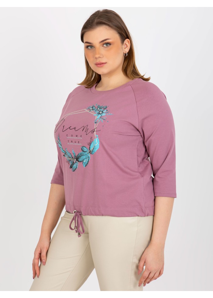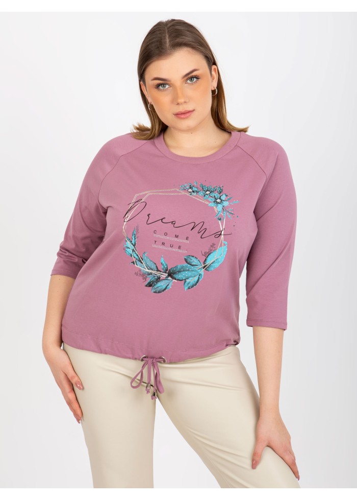 Dámske tričko s potlačou, 3/4 rukávy, okrúhly výstrih, šnúrka v spodnej časti, univerzálna veľkosť, miery modelky: výška 172 cm, prsia 103 cm, pás 73 cm, boky 103 cm., rozmer produktu meraného na plocho:, šírka pod plecami: 60 cm, dĺžka rukáva: 42 cm, celková dĺžka: 64 cm.