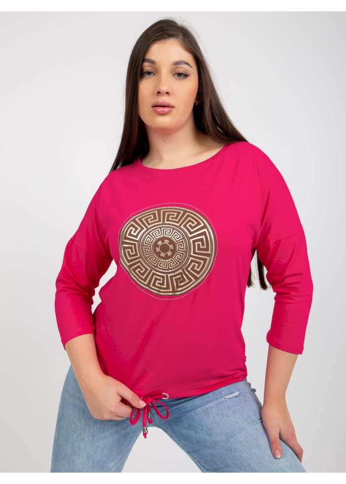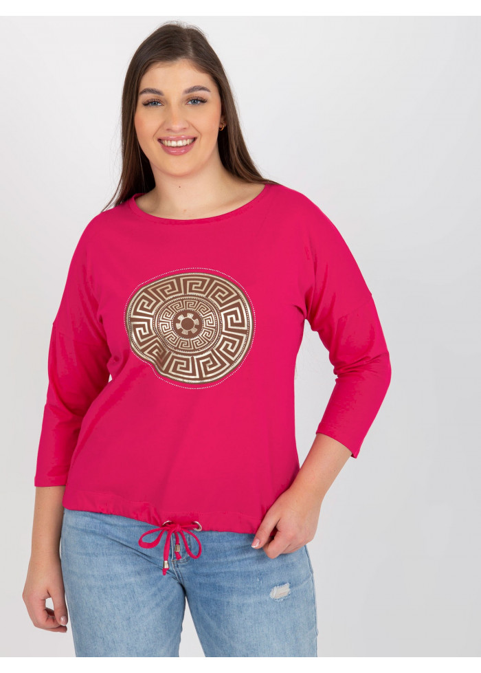Dámske tričko s potlačou, okrúhly výstrih, 3/4 rukávy, sťahujúca šnúrka v spodnej časti, univerzálna veľkosť, miery modelky: výška: 176 cm, prsia: 111 cm, pás: 82 cm, boky: 114 cm, rozmer produktu meraného na plocho:, šírka pod plecami: 58 cm, dĺžka rukáva: 43 cm, celková dĺžka: 65 cm.