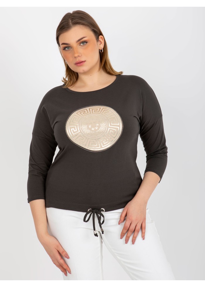 Dámske tričko s potlačou, okrúhly výstrih, 3/4 rukávy, sťahujúca šnúrka v spodnej časti, univerzálna veľkosť, miery modelky: výška: 176 cm, prsia: 111 cm, pás: 82 cm, boky: 114 cm, rozmer produktu meraného na plocho:, šírka pod plecami: 58 cm, dĺžka rukáva: 43 cm, celková dĺžka: 65 cm.