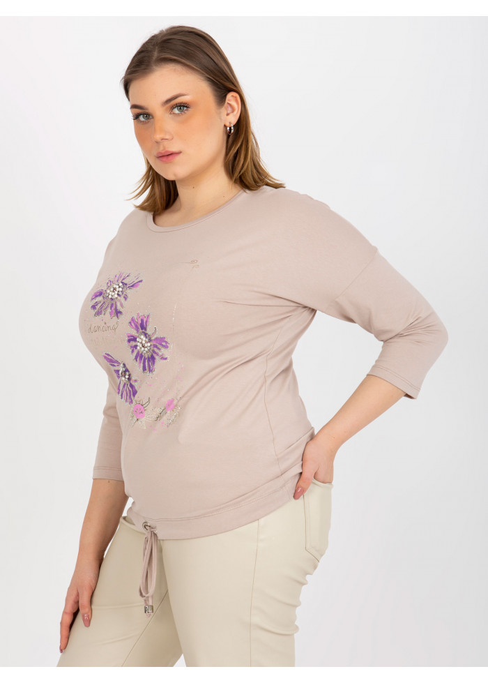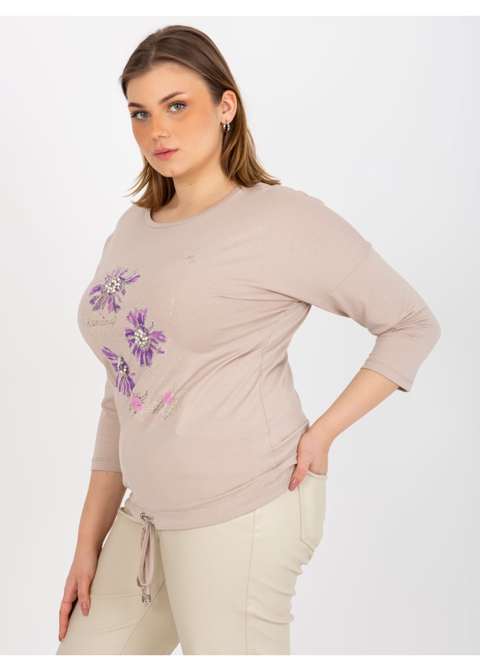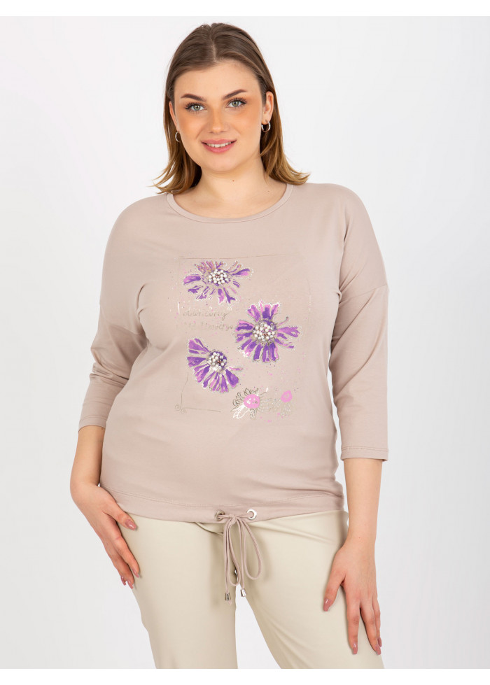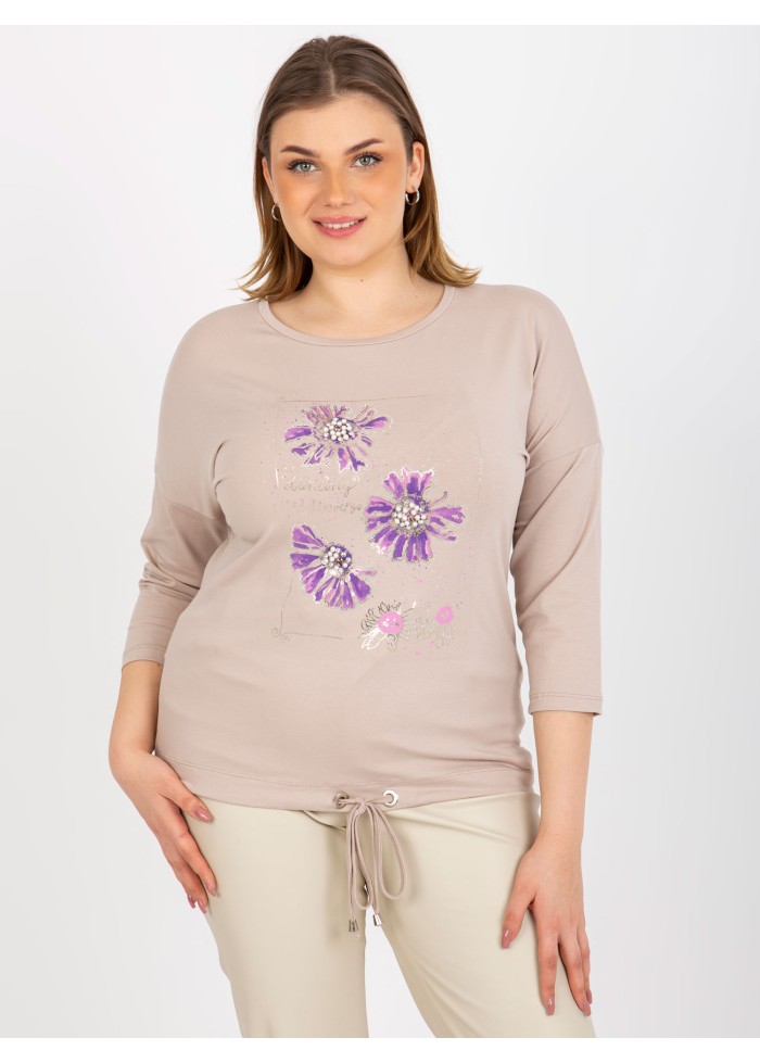 Dámske tričko s potlačou, okrúhly výstrih, 7/8 rukávy, šnúrka na stiahnutie v spodnej časti, univerzálna veľkosť, miery modelky: výška 172 cm, prsia 103 cm, pás 73 cm, boky 103 cm., rozmer produktu meraného na plocho:, šírka pod plecami: 59 cm, dĺžka rukáva: 44 cm, celková dĺžka: 65 cm.