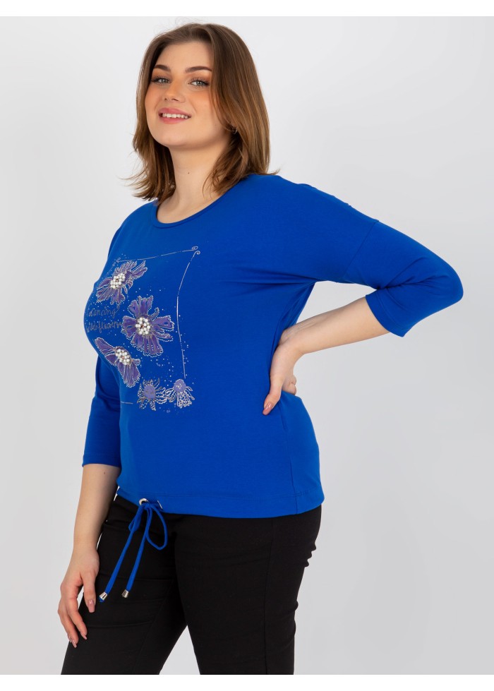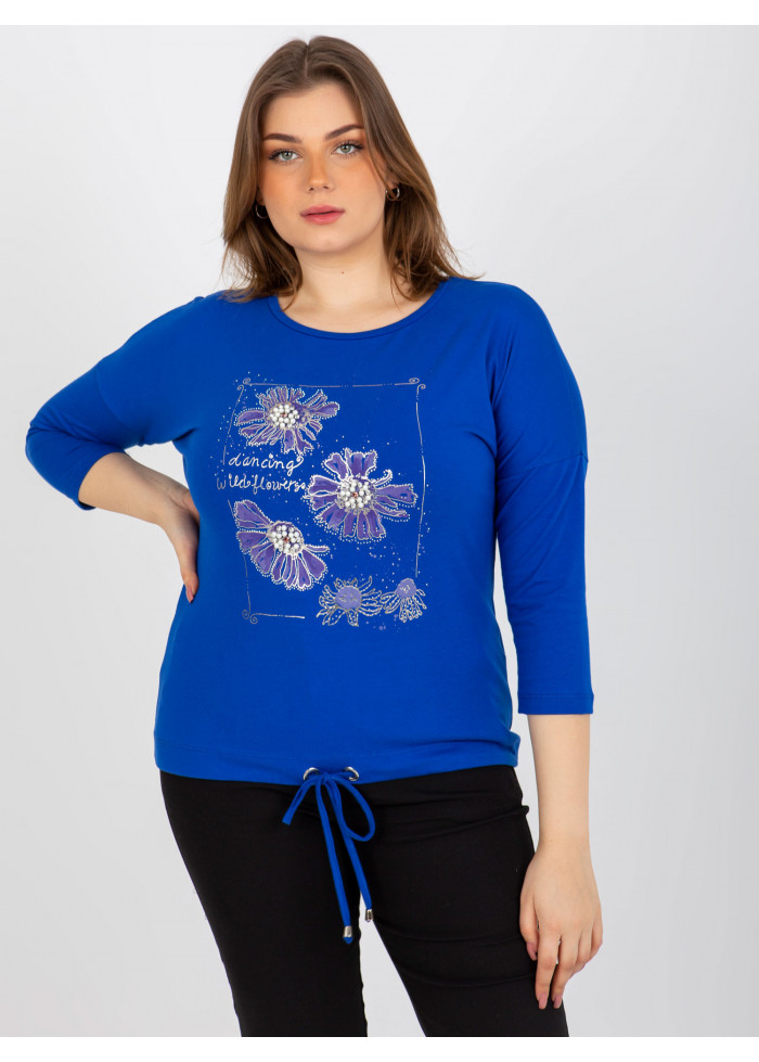 Dámske tričko s potlačou, okrúhly výstrih, 7/8 rukávy, šnúrka na stiahnutie v spodnej časti, univerzálna veľkosť, miery modelky: výška 172 cm, prsia 103 cm, pás 73 cm, boky 103 cm., rozmer produktu meraného na plocho:, šírka pod plecami: 59 cm, dĺžka rukáva: 44 cm, celková dĺžka: 65 cm.