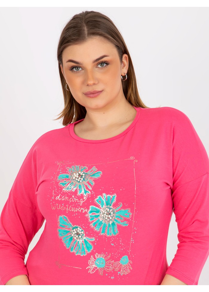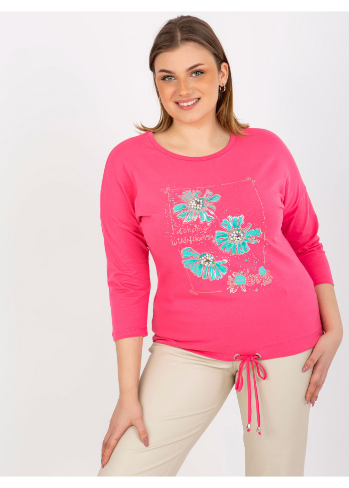 Dámske tričko s potlačou, okrúhly výstrih, 7/8 rukávy, šnúrka na stiahnutie v spodnej časti, univerzálna veľkosť, miery modelky: výška 172 cm, prsia 103 cm, pás 73 cm, boky 103 cm., rozmer produktu meraného na plocho:, šírka pod plecami: 59 cm, dĺžka rukáva: 44 cm, celková dĺžka: 65 cm.