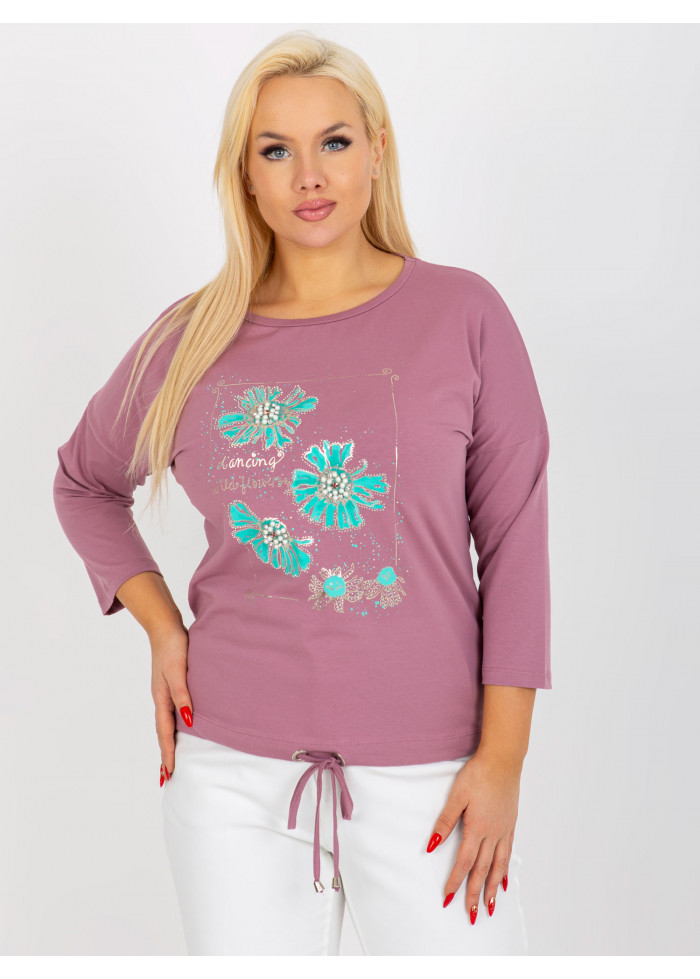 Dámske tričko s potlačou, okrúhly výstrih, 7/8 rukávy, šnúrka na stiahnutie v spodnej časti, univerzálna veľkosť, miery modelky: výška 172 cm, prsia 103 cm, pás 73 cm, boky 103 cm., rozmer produktu meraného na plocho:, šírka pod plecami: 59 cm, dĺžka rukáva: 44 cm, celková dĺžka: 65 cm.