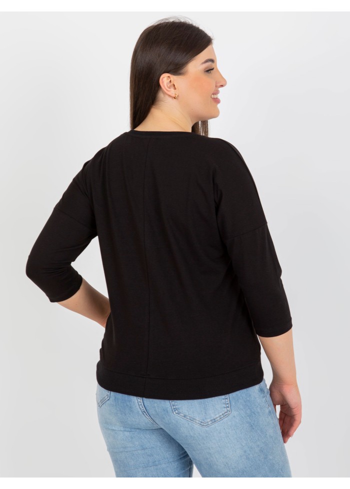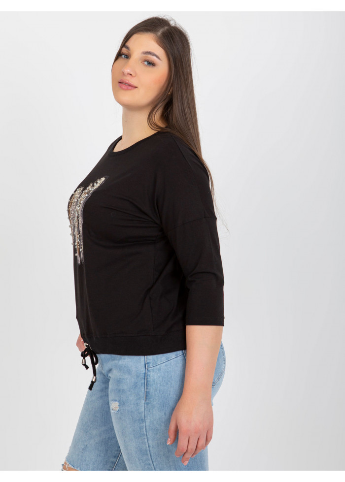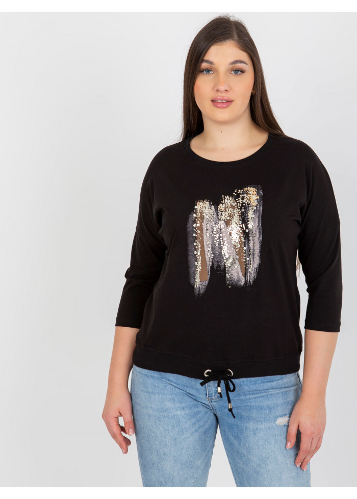 Dámske tričko s potlačou, okrúhly výstrih, 3/4 rukávy, šnúrka na stiahnutie v spodnej časti, univerzálna veľkosť, miery modelky: výška: 174 cm, prsia: 100 cm, pás: 74 cm, boky: 107 cm, rozmer produktu meraného na plocho:, šírka pod plecami: 62 cm, dĺžka rukáva: 42 cm, celková dĺžka: 64 cm.