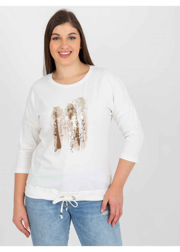 Dámske tričko s potlačou, okrúhly výstrih, 3/4 rukávy, šnúrka na stiahnutie v spodnej časti, univerzálna veľkosť, miery modelky: výška: 174 cm, prsia: 100 cm, pás: 74 cm, boky: 107 cm, rozmer produktu meraného na plocho:, šírka pod plecami: 62 cm, dĺžka rukáva: 42 cm, celková dĺžka: 64 cm.