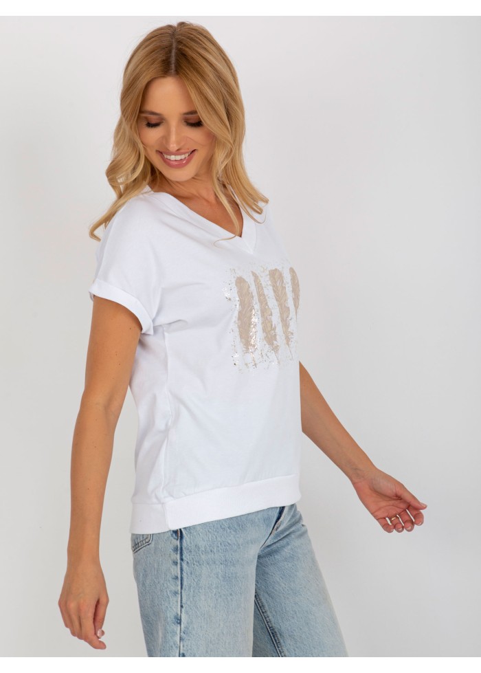 Dámske tričko s potlačou, výstrih do v, krátky rukáv, voľnejsí strih, lém na spodnej časti, modelka má na sebe veľkosť s/m, miery modelky: výška 175 cm, prsia 84 cm, pás 65 cm, boky 92 cm., rozmer produktu meraného na plocho, vo veľkosti s/m:, šírka pod plecami: 54 cm, celková dĺžka: 62 cm.