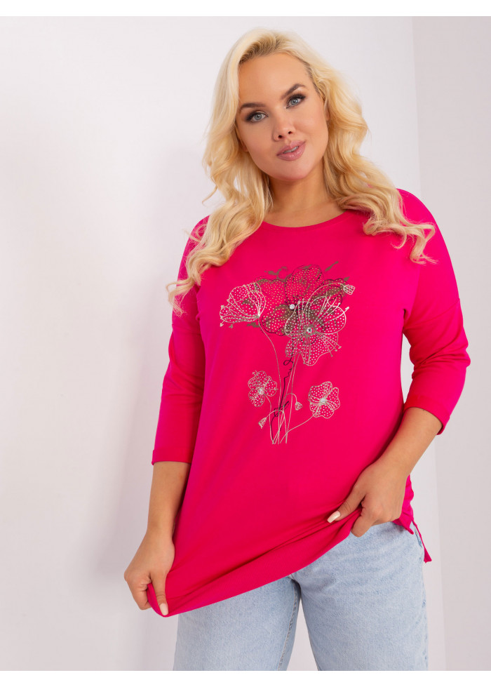Dámske tričko s potlačou, okrúhly výstrih, 3/4 rukávy, lémy na koncoch rukávov a v spodnej časti, rozparky na bokoch, univerzálna veľkosť, miery modelky: výška 172 cm, prsia 103 cm, pás 73 cm, boky 103 cm., rozmer produktu meraného na plocho:, šírka pod plecami: 58 cm, dĺžka rukáva: 41 cm, celková dĺžka: 68 cm.