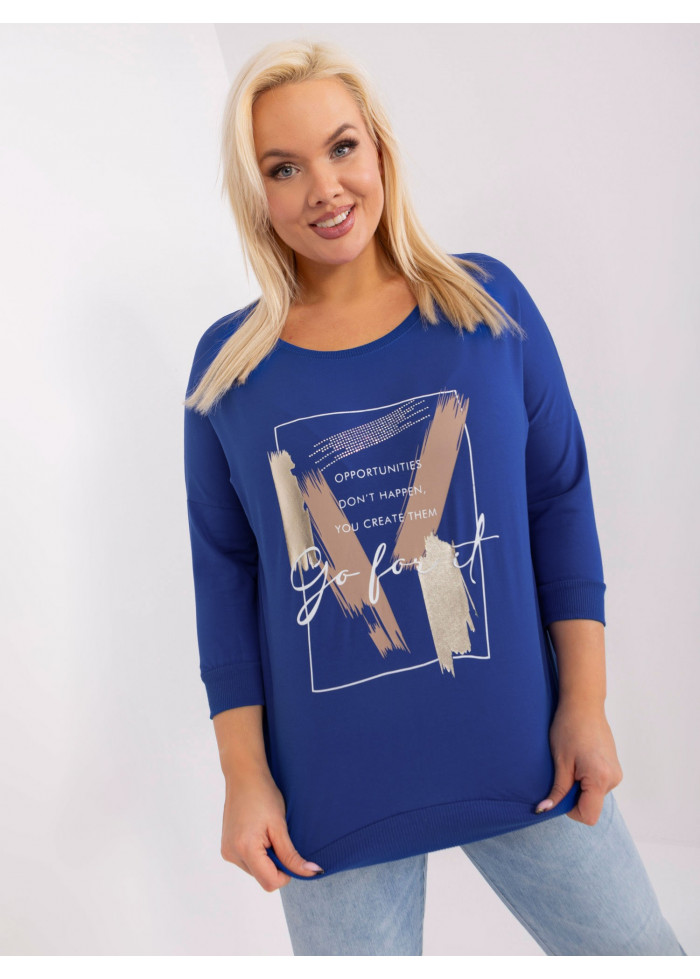Dámske tričko s potlačou, ozdobný nápis, okrúhly výstrih, 3/4 rukávy, lémy na koncoch rukávov a v spodnej časti, univerzálna veľkosť, miery modelky: výška 172 cm, prsia 103 cm, pás 73 cm, boky 103 cm., rozmer produktu meraného na plocho:, šírka pod plecami: 64 cm, dĺžka rukáva: 40 cm, celková dĺžka: 63 cm.
