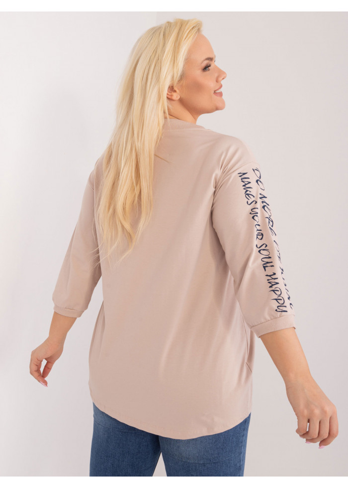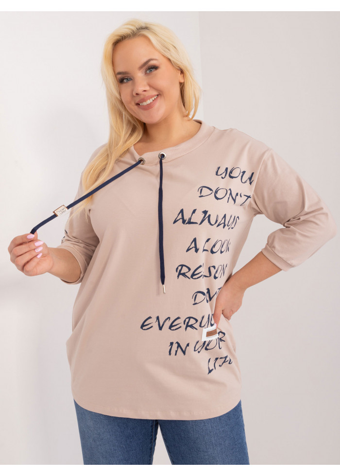 Dámske tričko s potlačou, 3/4 rukávy, okrúhly výstrih, ozdobná šnúrka v dekolte, lém v spodnej časti, univerzálna veľkosť, miery modelky: výška 172 cm, prsia 103 cm, pás 73 cm, boky 103 cm., rozmer produktu meraného na plocho:, šírka pod plecami: 60 cm, dĺžka rukáva: 41 cm, celková dĺžka: 75 cm.