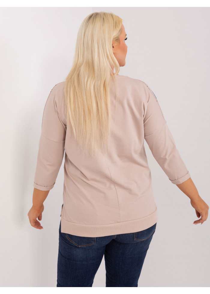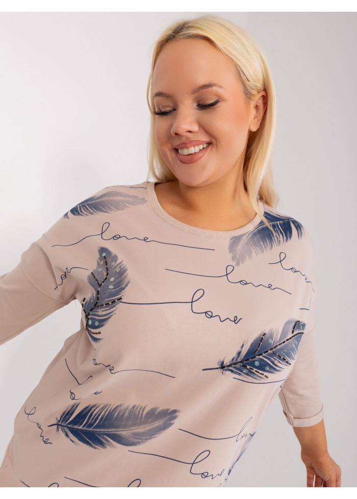 Dámske tričko s potlačou, asymetrický strih, 3/4 rukávy, okrúhly výstrih, malé rozparky na bokoch, univerzálna veľkosť, miery modelky: výška 172 cm, prsia 103 cm, pás 73 cm, boky 103 cm., rozmer produktu meraného na plocho:, šírka pod plecami: 65 cm, dĺžka rukáva: 42 cm, celková dĺžka: vpredu: 68 cm, vzadu: 71 cm.