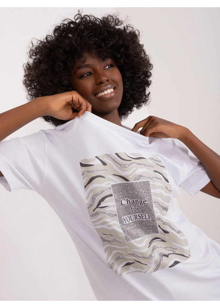 Basic tričko s potlačou, okrúhly výstrih, krátky rukáv, ozdobné aplikácie, modelka má na sebe veľkosť s, miery modelky: výška: 168 cm, prsia: 82 cm, pás: 62 cm, boky: 93 cm, rozmer produktu meraného na plocho, vo veľkosti s:, šírka pod plecami: 50 cm, celková dĺžka: 65 cm.