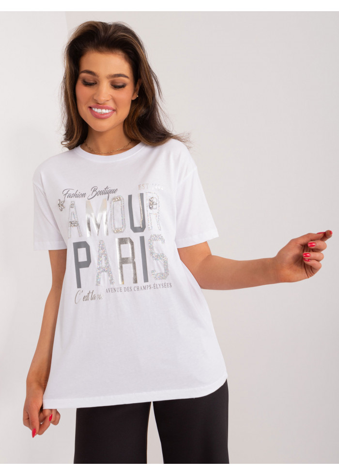 Dámske tričko s potlačou, okrúhly výstrih, krátky rukáv, ozdobný nápis, jednoduchý strih, modelka má na sebe veľkosť s, miery modelky: 173 cm, prsia: 90 cm, pás: 64 cm, boky: 93 cm, rozmer produktu meraného na plocho, vo veľkosti s:, šírka pod plecami: 52 cm, celková dĺžka: 65 cm.