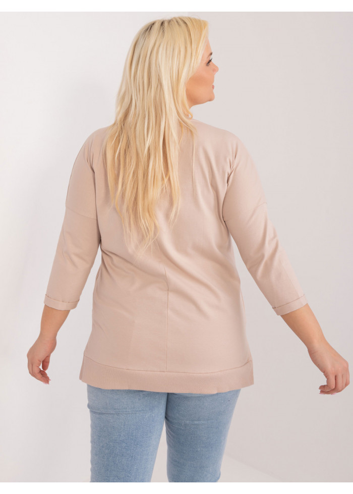 Bavlnené tričko s 3/4 rukávom, okrúhly výstrih, ozdobná potlač, asymetrický strih, jemné sťahujúce lémy na koncoch rukávov a v spodnej časti, malé rozparky na bokoch, modelka má na sebe univerzálnu veľkosť, miery modelky: výška 172 cm, prsia 103 cm, pás 73 cm, boky 103 cm., rozmer produktu meraného na plocho:, šírka pod plecami: 65 cm, dĺžka rukáva: 41 cm, celková dĺžka: vpredu: 68 cm, vzadu: 71 cm.