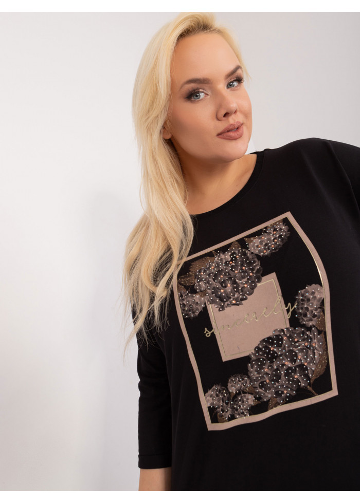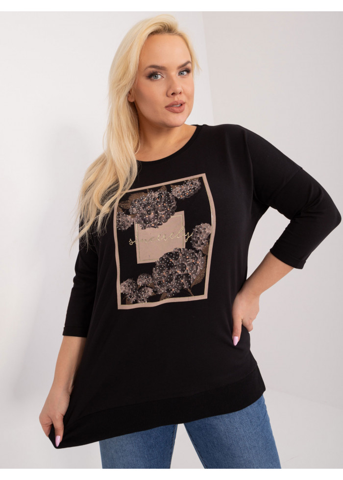 Bavlnené tričko s 3/4 rukávom, okrúhly výstrih, ozdobná potlač, asymetrický strih, jemné sťahujúce lémy na koncoch rukávov a v spodnej časti, malé rozparky na bokoch, modelka má na sebe univerzálnu veľkosť, miery modelky: výška 172 cm, prsia 103 cm, pás 73 cm, boky 103 cm., rozmer produktu meraného na plocho:, šírka pod plecami: 65 cm, dĺžka rukáva: 41 cm, celková dĺžka: vpredu: 68 cm, vzadu: 71 cm.