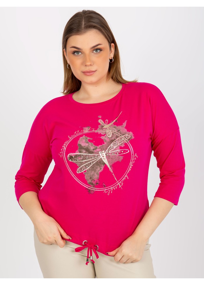 Dámske tričko s potlačou, okrúhly výstrih, 3/4 rukávy, šnúrka na stiahnutie v spodnej časti, univerzálna veľkosť, miery modelky: výška 172 cm, prsia 103 cm, pás 73 cm, boky 103 cm., rozmer produktu meraného na plocho:, šírka pod plecami: 61 cm, dĺžka rukáva: 44 cm, celková dĺžka: 65 cm.