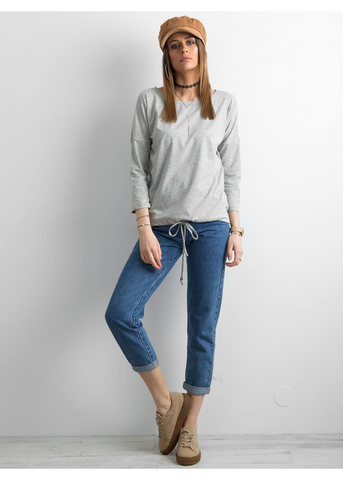 Dámske pohodlné tričko, okrúhly výstrih, 3/4 rukávy, sťahujúca šnúrka v spodnej časti, spôsob prania: pranie v práčke na 30°c, materiál: 90% bavlna, 10% elastan, modelka má na sebe veľkosť s, miery modelky: výška 176 cm, prsia 85 cm, pás: 64 cm, boky: 92 cm.