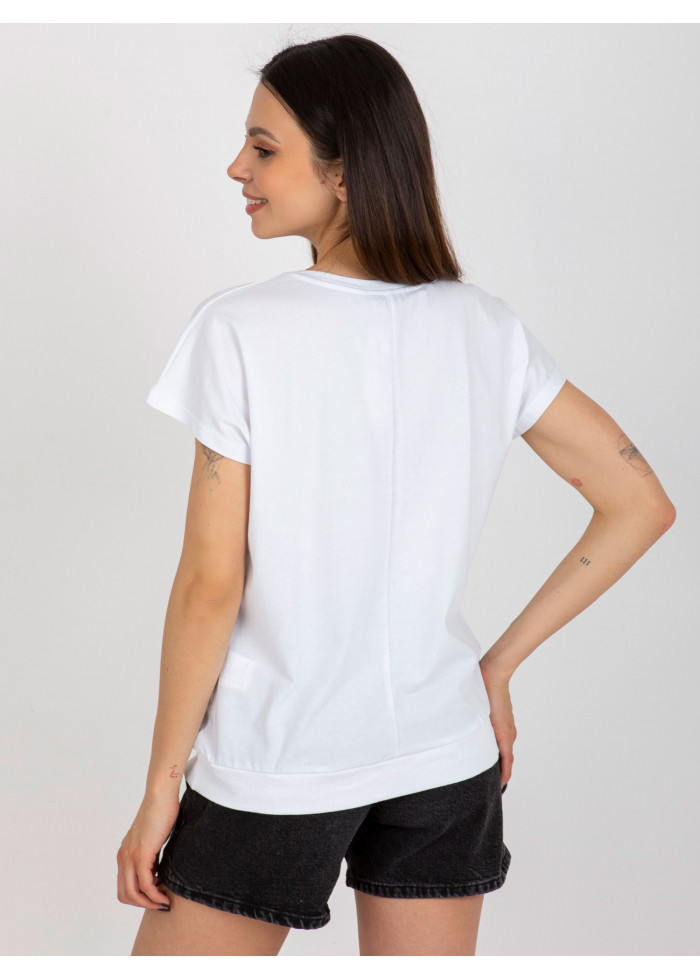 Dámske tričko s potlačou, okrúhly výstrih, krátky rukáv, lém v spodnej časti, modelka má na sebe veľkosť s/m, miery modelky: výška 175 cm, prsia 84 cm, pás 65 cm, boky 92 cm., rozmer produktu meraného na plocho, vo veľkosti s/m:, šírka pod plecami: 54 cm, celková dĺžka: 62 cm.