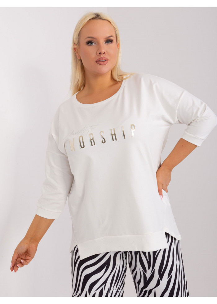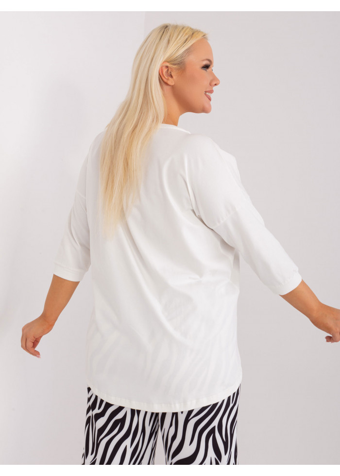 Dámske tričko s potlačou, 3/4 rukávy, okrúhly výstrih, asymetrický strih, univerzálna veľkosť, miery modelky: výška 172 cm, prsia 103 cm, pás 73 cm, boky 103 cm., rozmer produktu meraného na plocho:, šírka pod plecami: 67 cm, dĺžka rukáva: 40 cm, celková dĺžka: vpredu: 67 cm, vzadu: 77 cm.