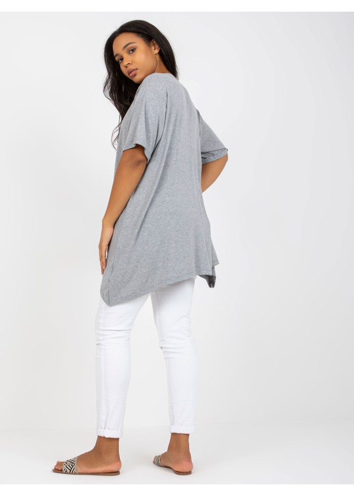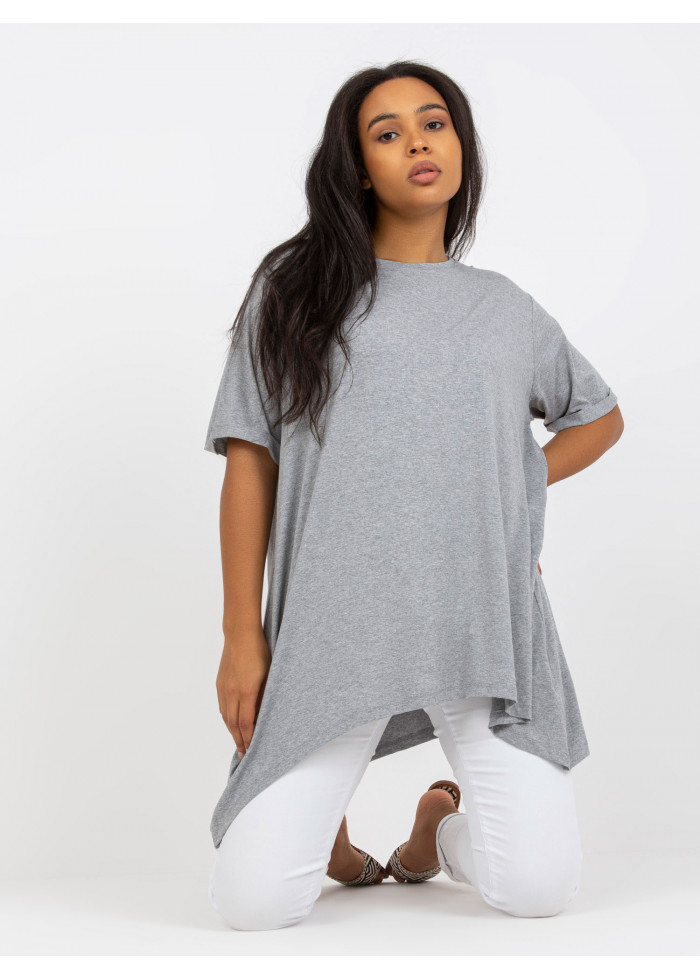 Dámska asymetrická tunika, okrúhly výstrih, krátky rukáv s ozdobným lémom, spôsob prania: pranie v práčke na 30°c, materiál: 65% polyester, 30% viskóza, 5% elastan, univerzálna veľkosť, miery modelky: výška 172 cm, prsia 103 cm, pás 73 cm, boky 103 cm., rozmer produktu meraného na plocho:, šírka pod plecami: 64 cm, celková dĺžka: 77 cm.