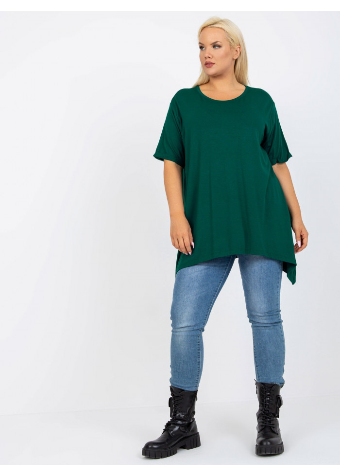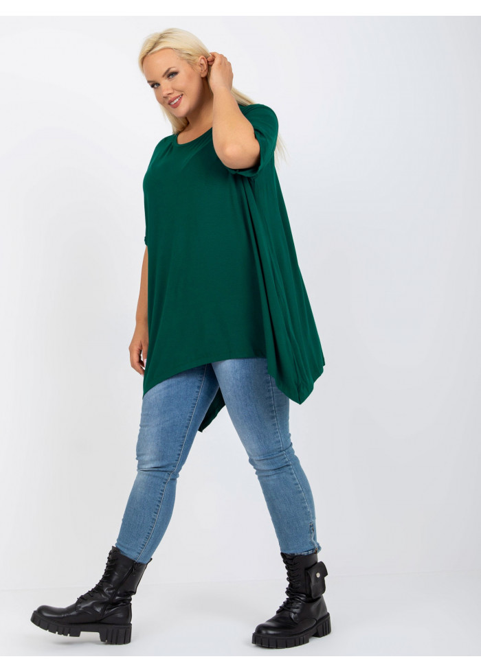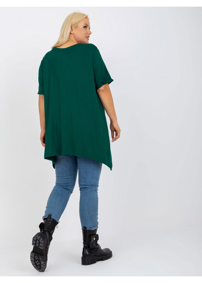 Dámska asymetrická tunika, okrúhly výstrih, krátky rukáv s ozdobným lémom, spôsob prania: pranie v práčke na 30°c, materiál: 65% polyester, 30% viskóza, 5% elastan, univerzálna veľkosť, miery modelky: výška 172 cm, prsia 103 cm, pás 73 cm, boky 103 cm., rozmer produktu meraného na plocho:, šírka pod plecami: 64 cm, celková dĺžka: 77 cm.