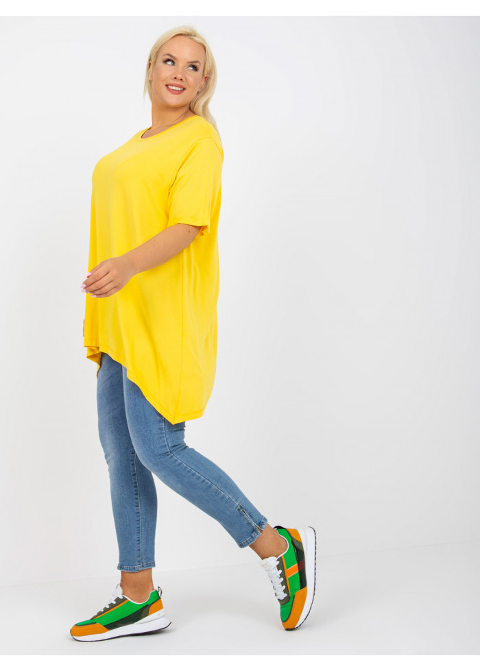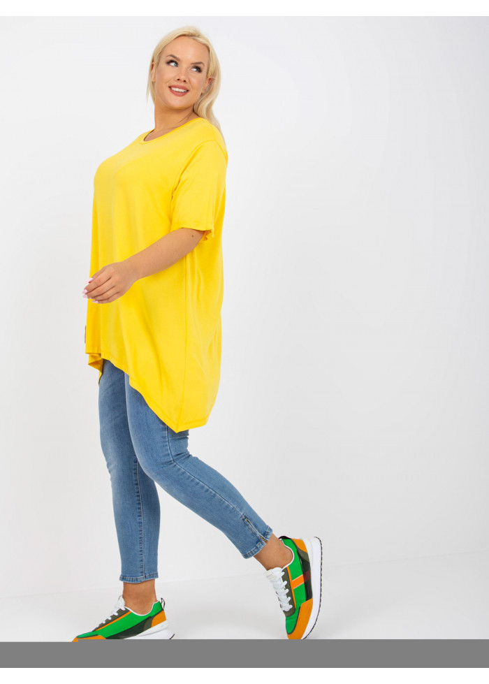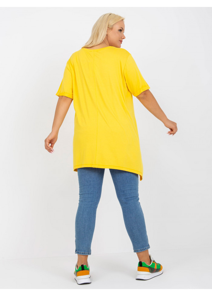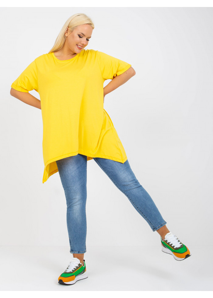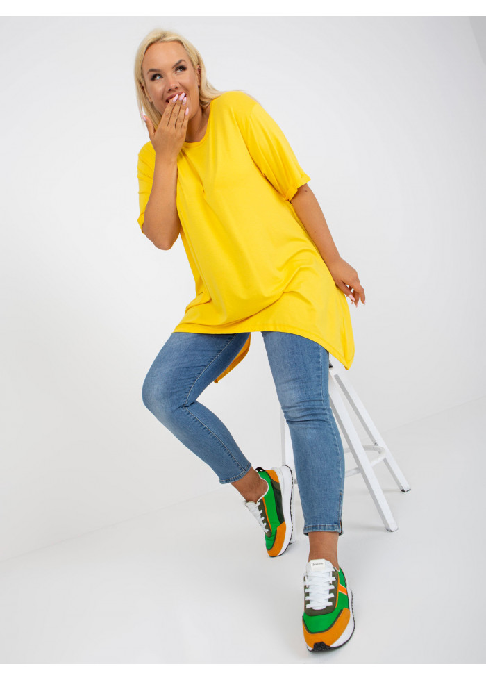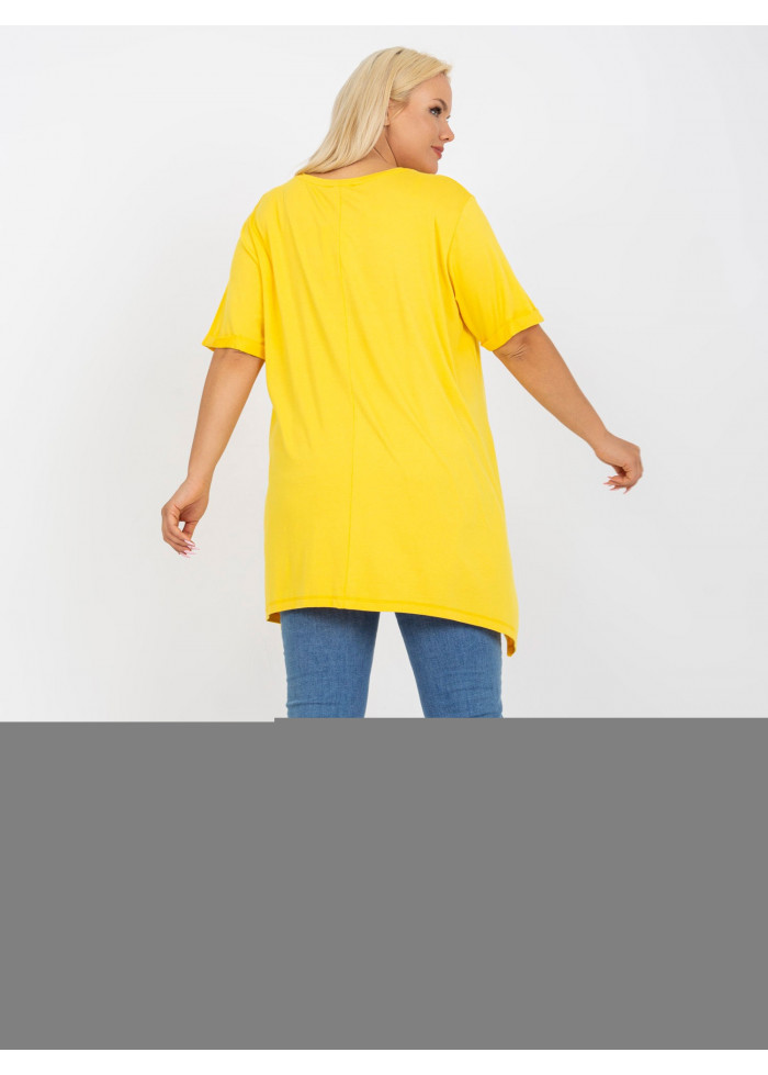 Dámska asymetrická tunika, okrúhly výstrih, krátky rukáv s ozdobným lémom, spôsob prania: pranie v práčke na 30°c, materiál: 65% polyester, 30% viskóza, 5% elastan, univerzálna veľkosť, miery modelky: výška 172 cm, prsia 103 cm, pás 73 cm, boky 103 cm., rozmer produktu meraného na plocho:, šírka pod plecami: 64 cm, celková dĺžka: 77 cm.