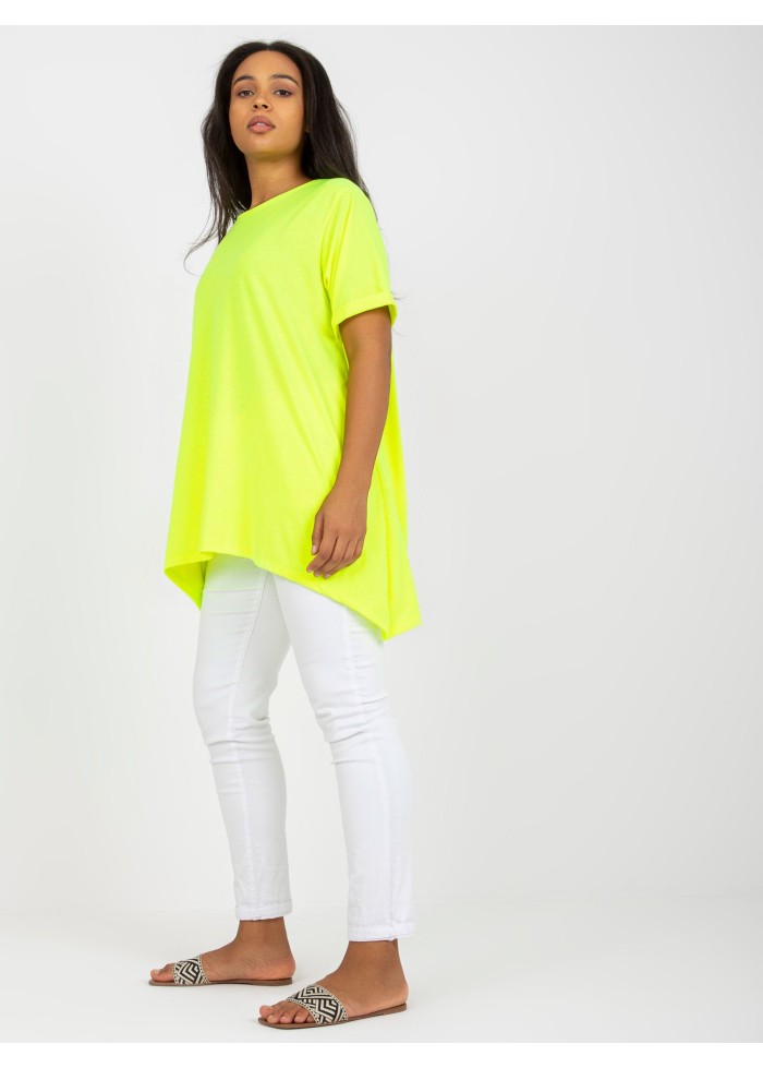 Dámska asymetrická tunika, okrúhly výstrih, krátky rukáv s ozdobným lémom, spôsob prania: pranie v práčke na 30°c, materiál: 65% polyester, 30% viskóza, 5% elastan, univerzálna veľkosť, miery modelky: výška 172 cm, prsia 103 cm, pás 73 cm, boky 103 cm., rozmer produktu meraného na plocho:, šírka pod plecami: 64 cm, celková dĺžka: 77 cm.