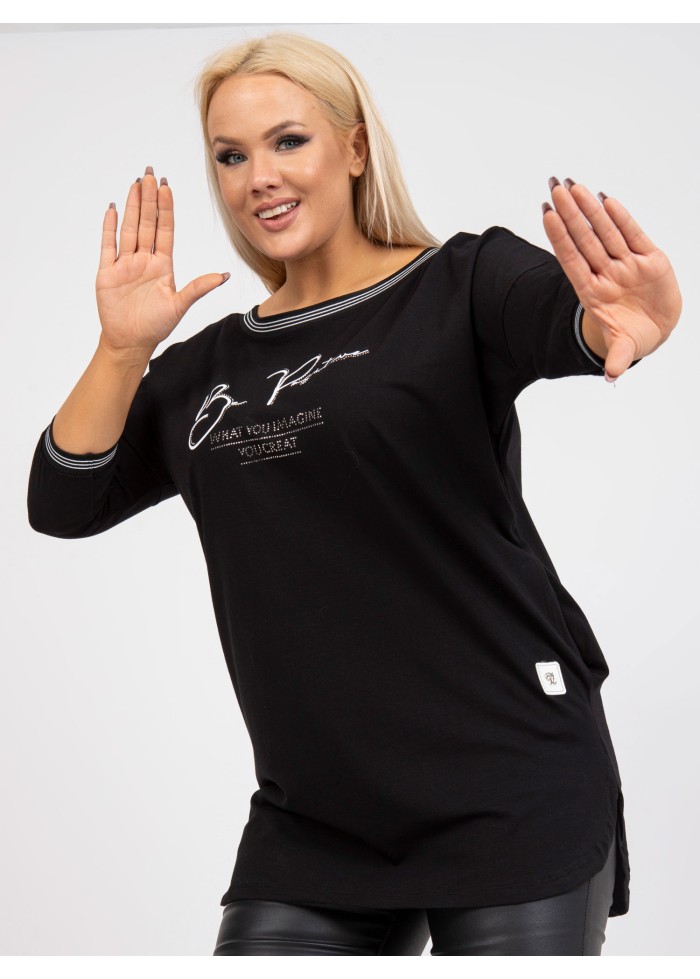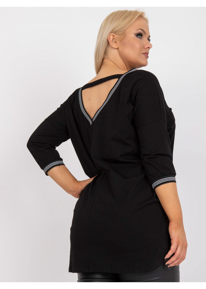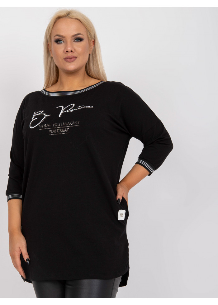 Dámska bavlnená tunika, 7/8 rukávy, elegantný lodičkový výstrih, módny predlžený strih, ozdobné lémy na rukávoch a dekolte, univerzálna veľkosť, materiál: 90% bavlna, 10% elastan, spôsob prania: pranie v práčke na 30°c, modelka má na sebe univerzálnu veľkosť, rozmery modelky: výška 171 cm, prsia 96 cm, pás 74 cm, boky 109 cm., rozmery tuniky merané naplocho: šírka v podpazuší - 67 cm, dĺžka rukáva - 42 cm, celková dĺžka: predný diel - 81 cm, zadný diel - 87 cm..