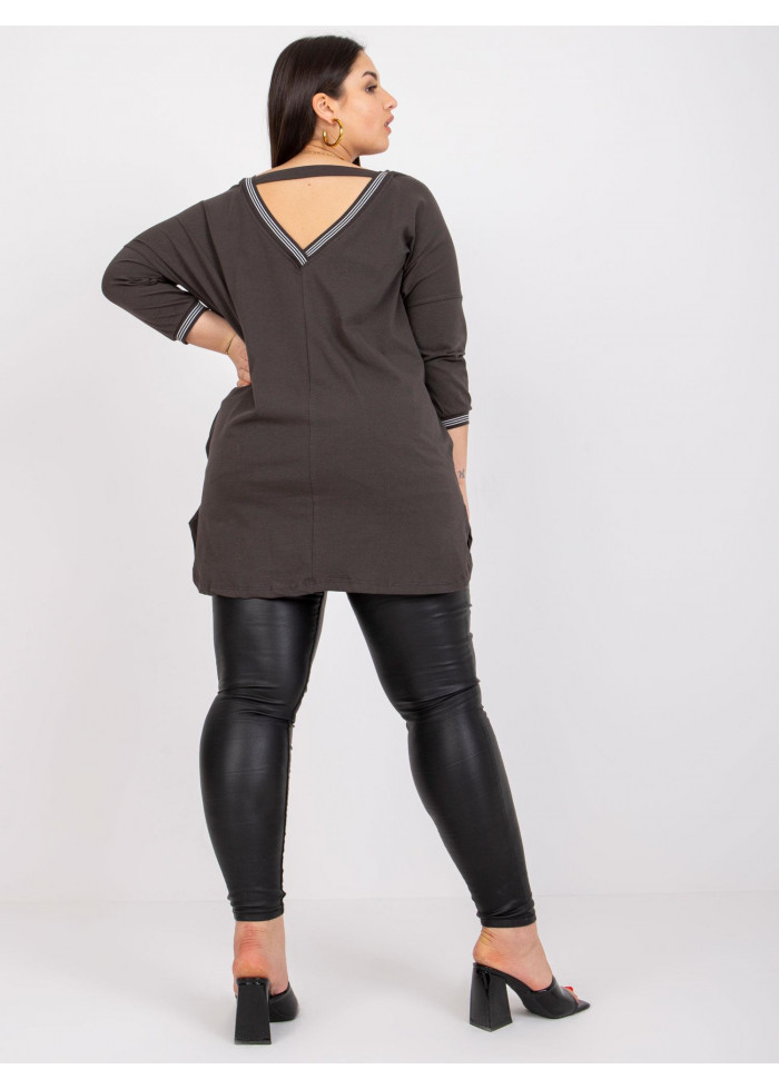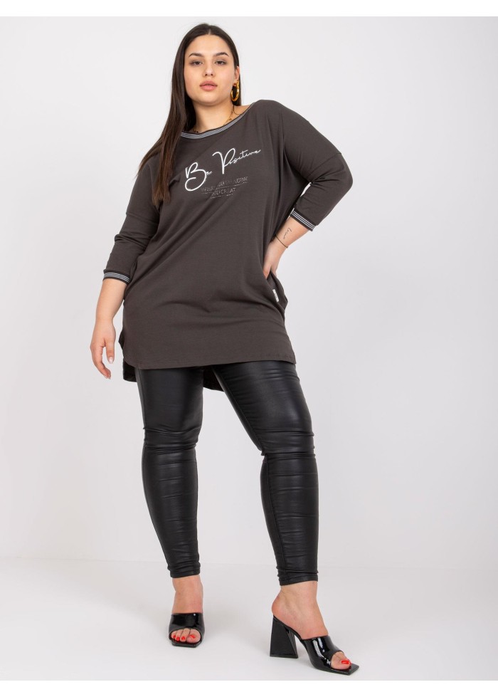 Dámska bavlnená tunika, 7/8 rukávy, elegantný lodičkový výstrih, módny predlžený strih, ozdobné lémy na rukávoch a dekolte, univerzálna veľkosť, materiál: 90% bavlna, 10% elastan, spôsob prania: pranie v práčke na 30°c, modelka má na sebe univerzálnu veľkosť, rozmery modelky: výška 171 cm, prsia 96 cm, pás 74 cm, boky 109 cm., rozmery tuniky merané naplocho: šírka v podpazuší - 67 cm, dĺžka rukáva - 42 cm, celková dĺžka: predný diel - 81 cm, zadný diel - 87 cm..