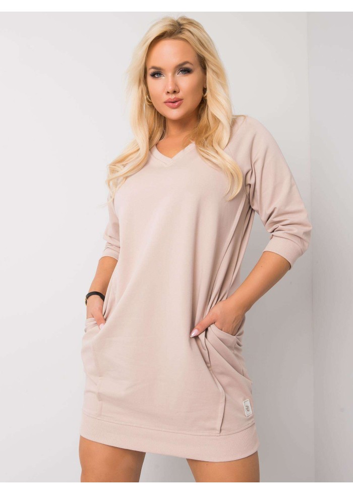 Dámska tunika s vreckami, teplákové minišaty, výstrih do v, ozdobné prešívanie, lém na spodnej časti, spôsob prania: pranie v práčke na 30°c, materiál: 90% bavlna, 10% elastan, univerzálna veľkosť, miery modelky: výška 172 cm, prsia 103 cm, pás 73 cm, boky 103 cm., rozmer produktu meraného na plocho:, šírka pod plecami: 55 cm, dĺžka rukáva: 42 cm, celková dĺžka: 85 cm.