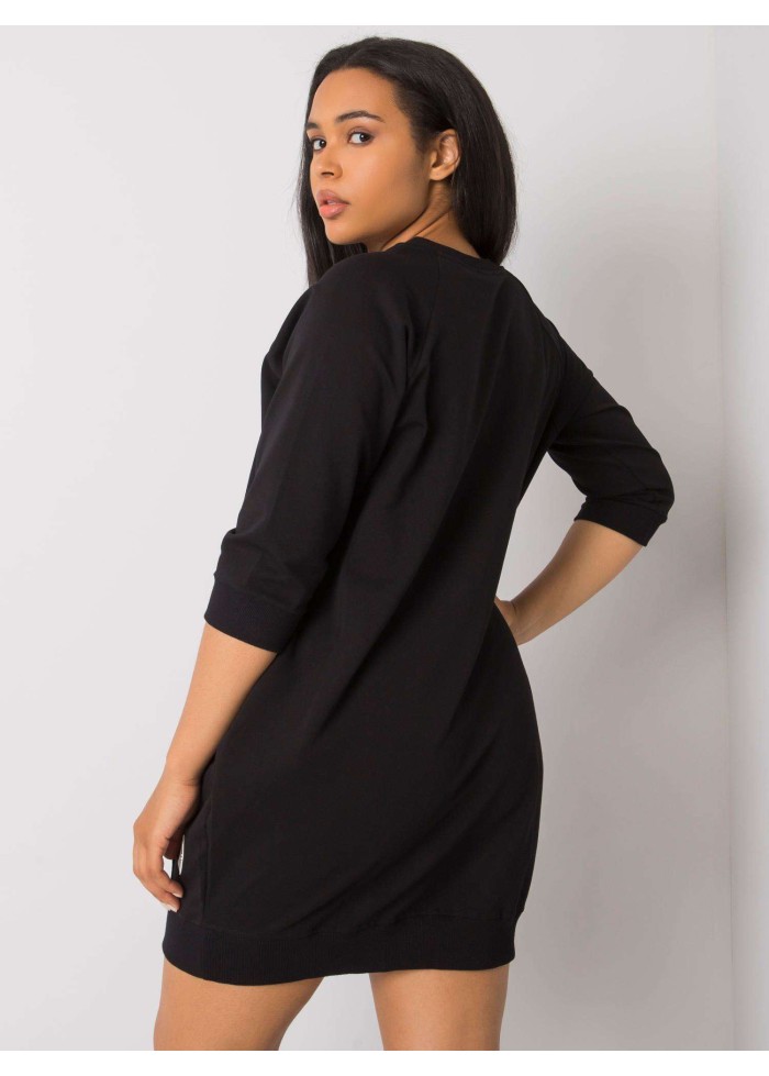 Dámska tunika s vreckami, teplákové minišaty, výstrih do v, ozdobné prešívanie, lém na spodnej časti, spôsob prania: pranie v práčke na 30°c, materiál: 90% bavlna, 10% elastan, univerzálna veľkosť, miery modelky: výška 172 cm, prsia 103 cm, pás 73 cm, boky 103 cm., rozmer produktu meraného na plocho:, šírka pod plecami: 55 cm, dĺžka rukáva: 42 cm, celková dĺžka: 85 cm.
