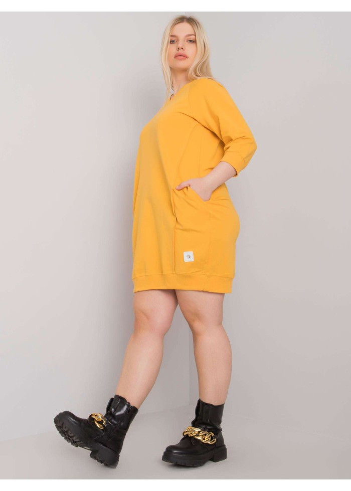 Dámska tunika s vreckami, teplákové minišaty, výstrih do v, ozdobné prešívanie, lém na spodnej časti, spôsob prania: pranie v práčke na 30°c, materiál: 90% bavlna, 10% elastan, univerzálna veľkosť, miery modelky: výška 172 cm, prsia 103 cm, pás 73 cm, boky 103 cm., rozmer produktu meraného na plocho:, šírka pod plecami: 55 cm, dĺžka rukáva: 42 cm, celková dĺžka: 85 cm.