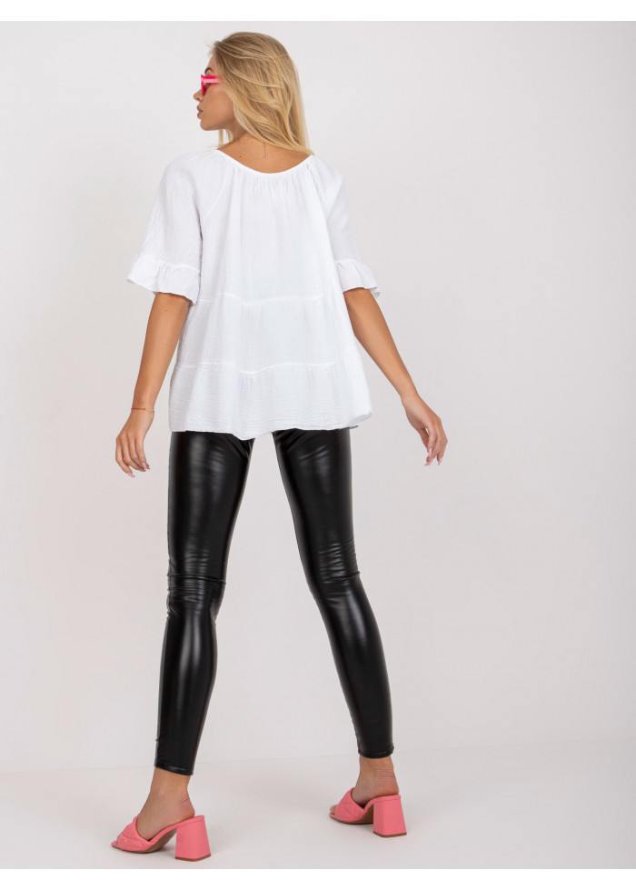 Asymetrická dámska tunika, ozdobná šnúrka v dekolte, široké polovičné rukávy, volánový strih, spôsob prania: pranie v práčke na 30°c, materiál: 100% bavlna, modelka má na sebe veľkosť s, miery modelky: výška: 168 cm, prsia: 82 cm, pás: 62 cm, boky: 93 cm, rozmer produktu meraného na plocho, vo veľkosti s:, šírka pod plecami: 56 cm, dĺžka rukáva: 38 cm, celková dĺžka: 67 cm.