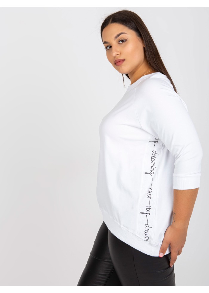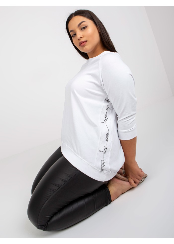 Dámska tunika s 3/4 rukávom, okrúhly výstrih, asymetrický strih, ozdobná potlač, lém v spodnej časti, spôsob prania: pranie v práčke na 30°c, materiál: 90% bavlna, 10% elastan, univerzálna veľkosť, miery modelky: výška: 175 cm, prsia: 90 cm, pás: 71 cm, boky: 100 cm, rozmer produktu meraného na plocho:, šírka pod plecami: 64 cm, dĺžka rukáva: 40 cm, celková dĺžka: 64 cm.