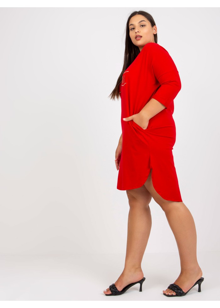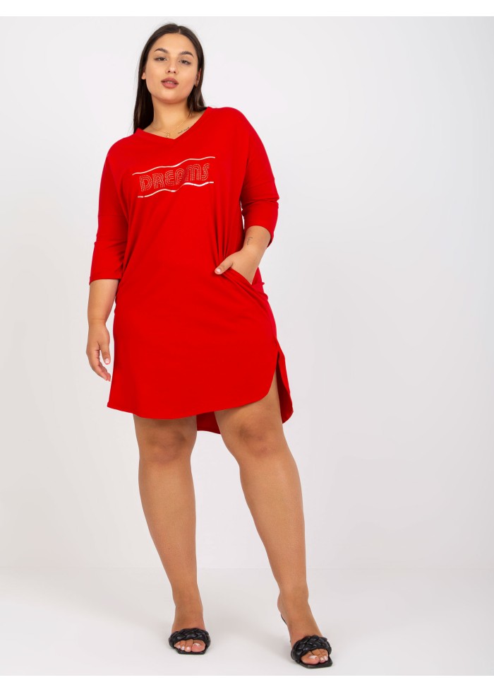 Dámska tunika, bavlnené dámske šaty, 3/4 rukávy, výstrih do v, asymetrický strih, rozparky po bokoch, ozdobná potlač, 2 vrecká, spôsob prania: pranie v práčke na 30°c, materiál: 90% bavlna, 10% elastan, univerzálna veľkosť, rozmery modelky: výška 171 cm, prsia 96 cm, pás 74 cm, boky 109 cm., rozmer produktu meraného na plocho:, šírka pod plecami: 65 cm, dĺžka rukáva: 39 cm, celková dĺžka: vpredu: 91 cm, vzadu: 100 cm.