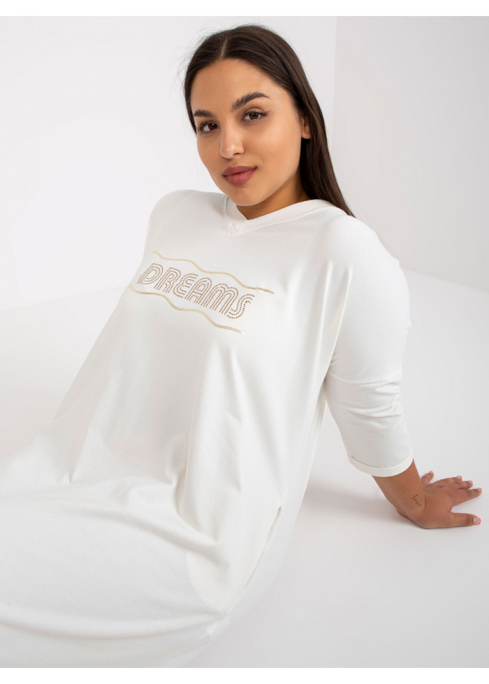 Dámska tunika, bavlnené dámske šaty, 3/4 rukávy, výstrih do v, asymetrický strih, rozparky po bokoch, ozdobná potlač, 2 vrecká, spôsob prania: pranie v práčke na 30°c, materiál: 90% bavlna, 10% elastan, univerzálna veľkosť, rozmery modelky: výška 171 cm, prsia 96 cm, pás 74 cm, boky 109 cm., rozmer produktu meraného na plocho:, šírka pod plecami: 65 cm, dĺžka rukáva: 39 cm, celková dĺžka: vpredu: 91 cm, vzadu: 100 cm.