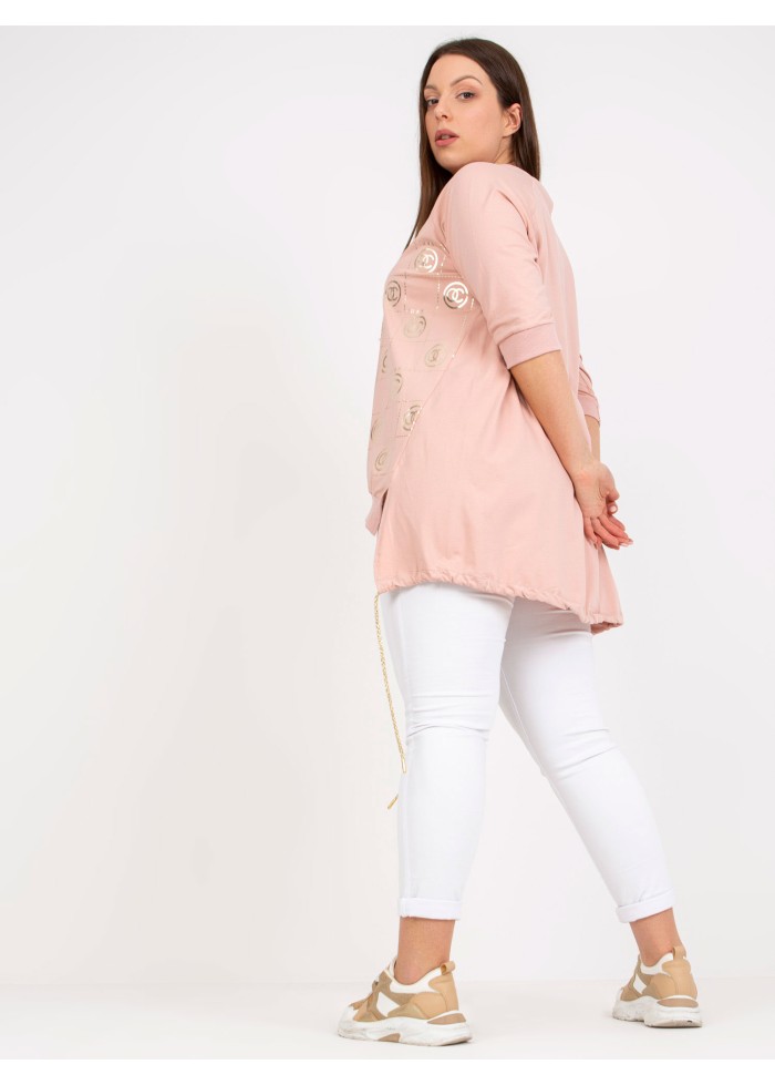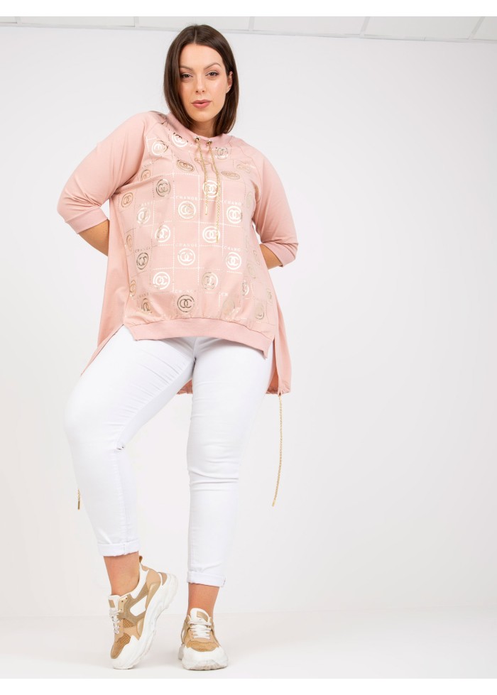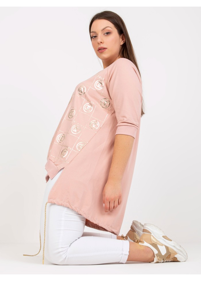 Asymetrická dámska tunika, ozdobná potlač, 3/4 rukávy, šnúrka v spodnej časti, lémy na koncoch rukávov a v spodnej časti, ozdobná šnúrka v dekolte, spôsob prania: pranie v práčke na 30°c, materiál: 90% bavlna, 10% elastan, univerzálna veľkosť, miery modelky: výška: 170 cm, prsia: 108 cm, pás: 86 cm, boky: 120 cm, rozmer produktu meraného na plocho:, šírka pod plecami: 65 cm, dĺžka rukáva: 39 cm, celková dĺžka: vpredu: 70 cm, vzadu: 87 cm.