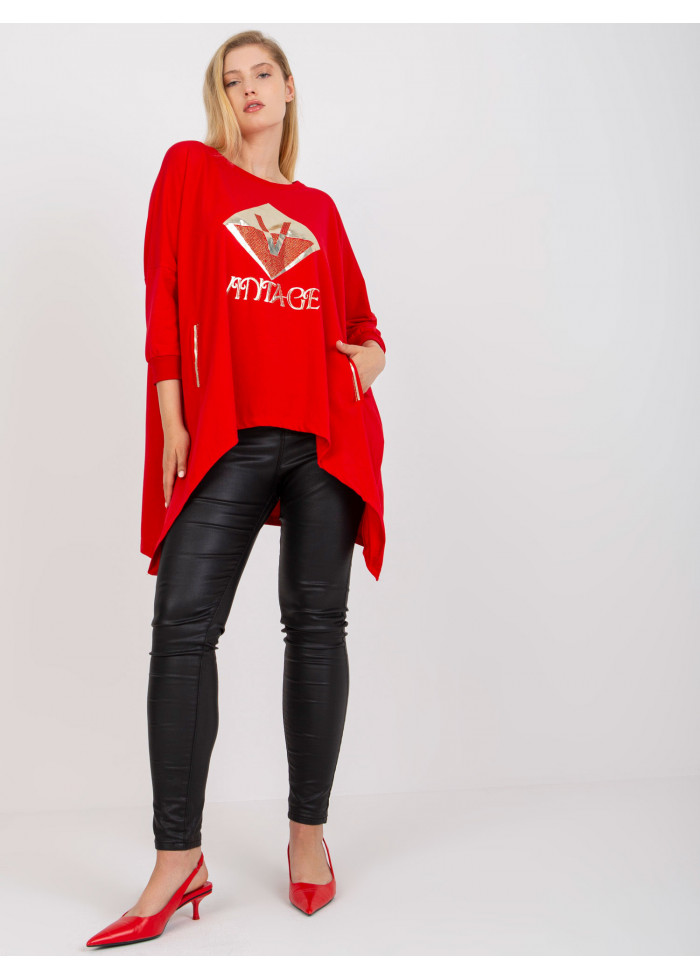 Dámska asymetrická tunika, 3/4 rukávy, lémy na koncoch rukávov, ozdobná potlač, jednoduchý strih do a, 2 vrecká, spôsob prania: pranie v práčke na 30°c, materiál: 90% bavlna, 10% elastan, univerzálna veľkosť, miery modelky: výška: 175 cm, prsia: 90 cm, pás: 71 cm, boky: 100 cm, rozmer produktu meraného na plocho:, šírka pod plecami: 67 cm, dĺžka rukáva: 42 cm, celková dĺžka: vpredu: 65 cm, vzadu: 80 cm.