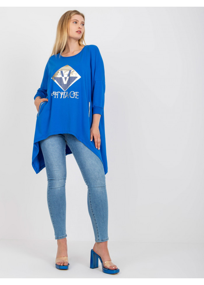Dámska asymetrická tunika, 3/4 rukávy, lémy na koncoch rukávov, ozdobná potlač, jednoduchý strih do a, 2 vrecká, spôsob prania: pranie v práčke na 30°c, materiál: 90% bavlna, 10% elastan, univerzálna veľkosť, miery modelky: výška: 175 cm, prsia: 90 cm, pás: 71 cm, boky: 100 cm, rozmer produktu meraného na plocho:, šírka pod plecami: 67 cm, dĺžka rukáva: 42 cm, celková dĺžka: vpredu: 65 cm, vzadu: 80 cm.
