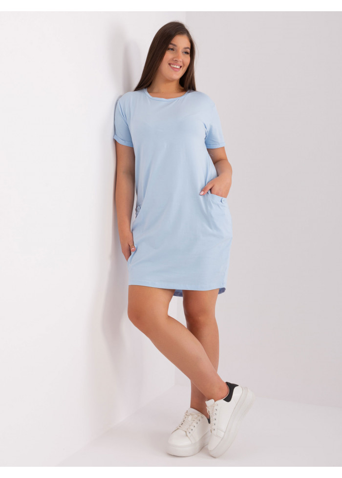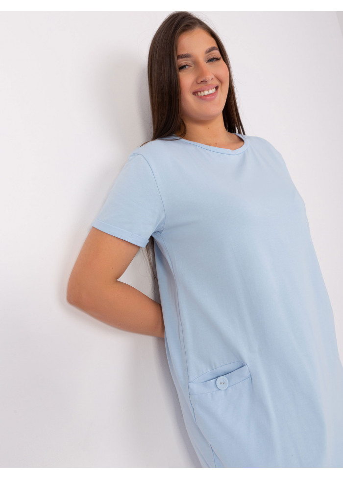 Bavlnená tunika, dámske minišaty, okrúhly výstrih, 2 vrecká, krátky rukáv, univerzálna veľkosť, miery modelky: výška 172 cm, prsia 103 cm, pás 73 cm, boky 103 cm., rozmer produktu meraného na plocho:, šírka pod plecami: 52 cm, celková dĺžka: 94 cm.
