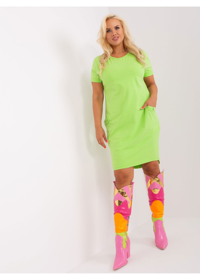 Bavlnená tunika, dámske minišaty, okrúhly výstrih, 2 vrecká, krátky rukáv, univerzálna veľkosť, miery modelky: výška 172 cm, prsia 103 cm, pás 73 cm, boky 103 cm., rozmer produktu meraného na plocho:, šírka pod plecami: 52 cm, celková dĺžka: 94 cm.