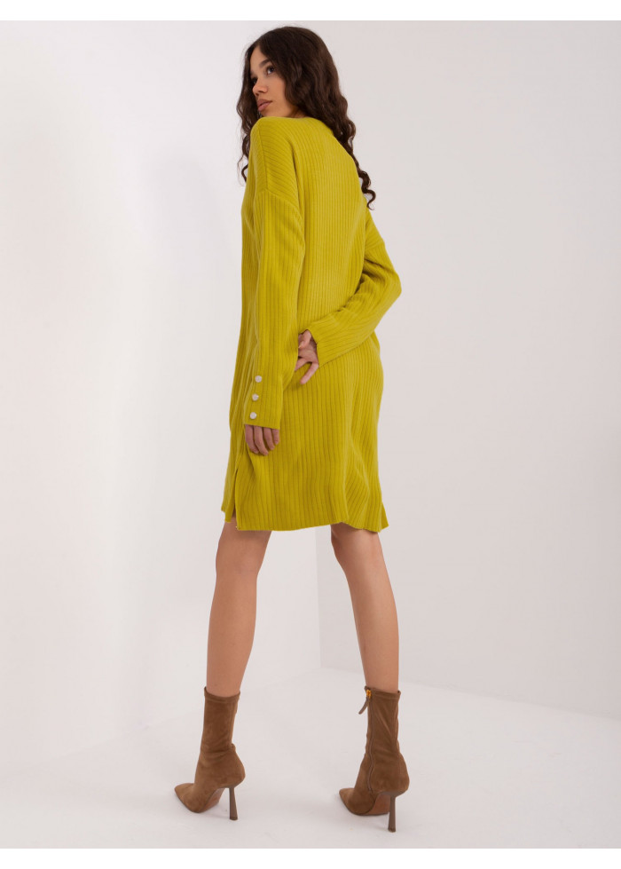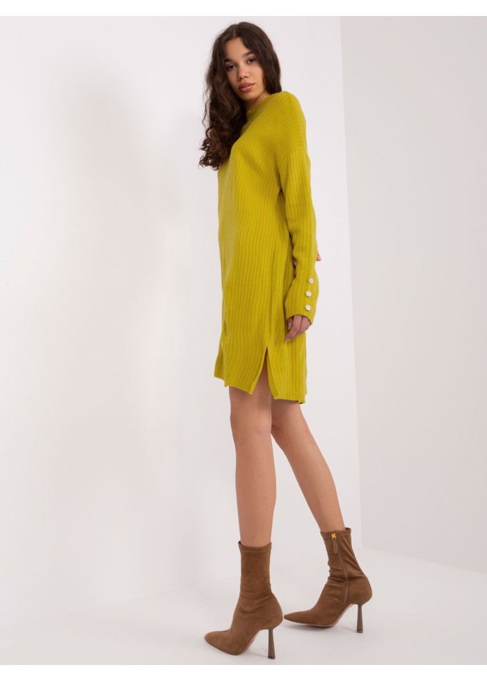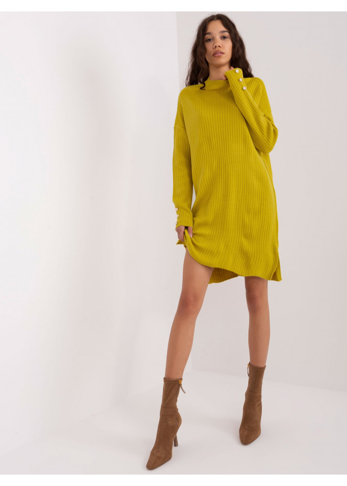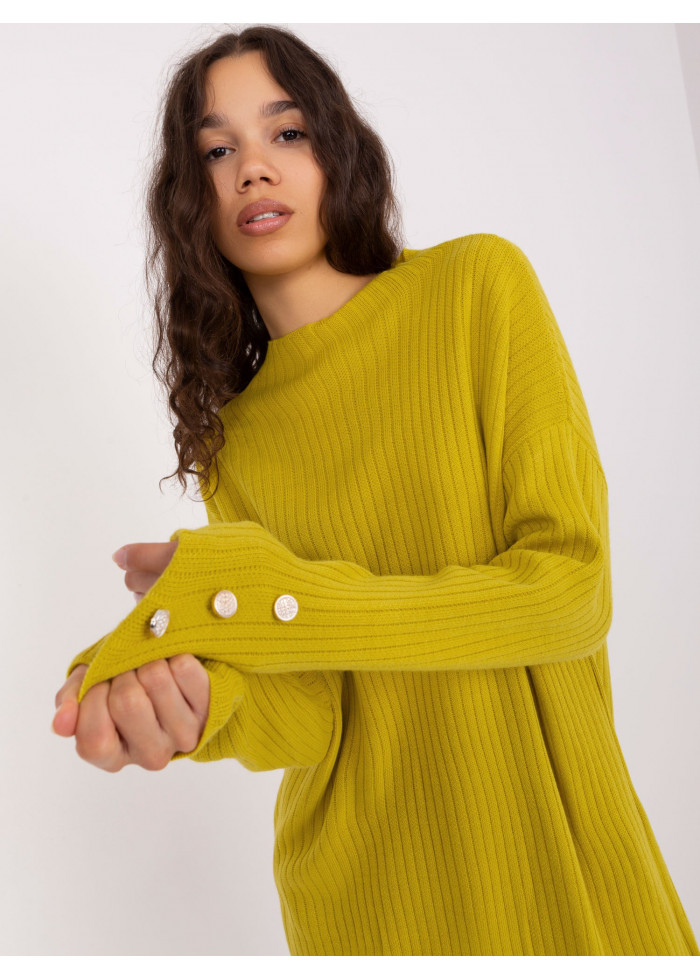 Dámska tunika, rebrovaný úplet, ozdobné gombíky na rukávoch, rozparky po bokoch, univerzálna veľkosť, miery modelky: výška: 178 cm, prsia: 80 cm, pás: 58 cm, boky: 88 cm, rozmer produktu meraného na plocho:, šírka pod plecami: 68 cm, dĺžka rukáva: 70 cm, celková dĺžka: 100 cm.