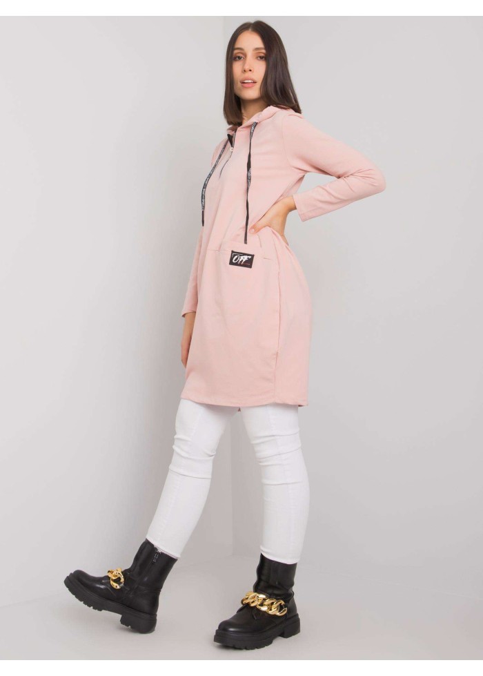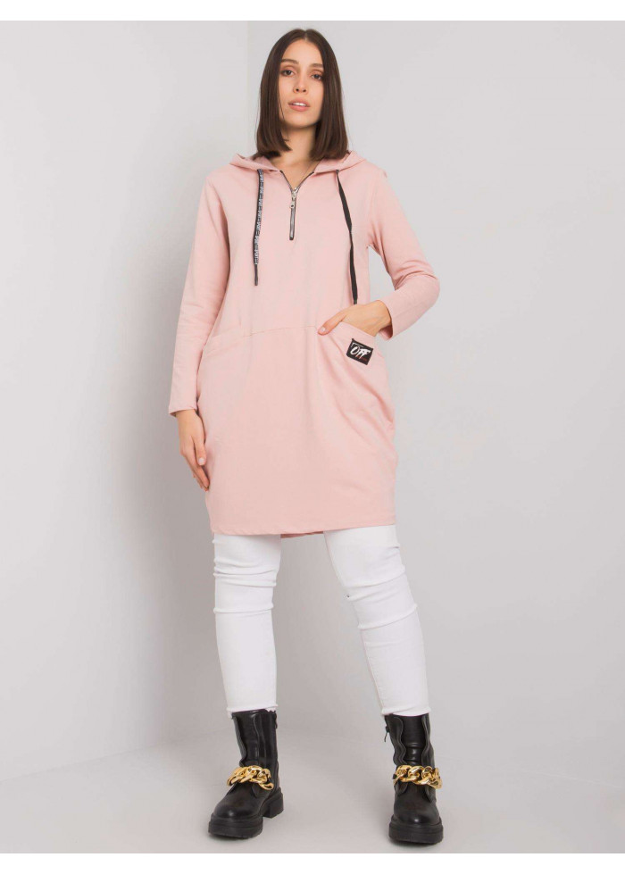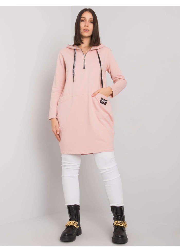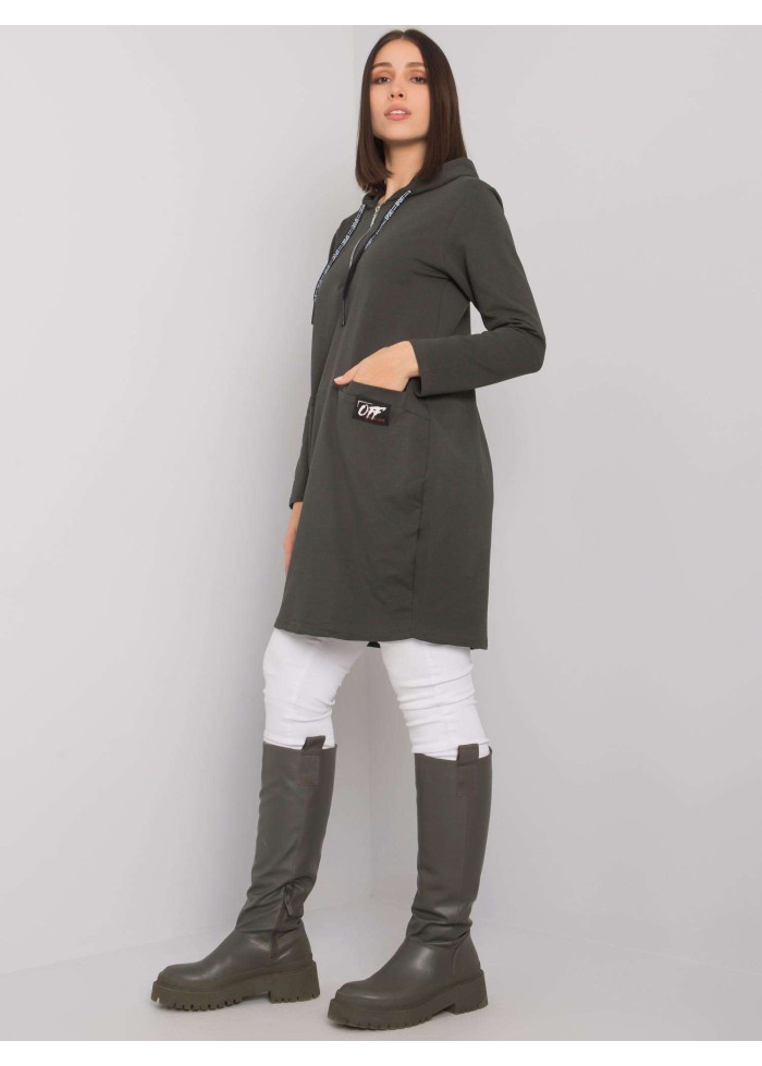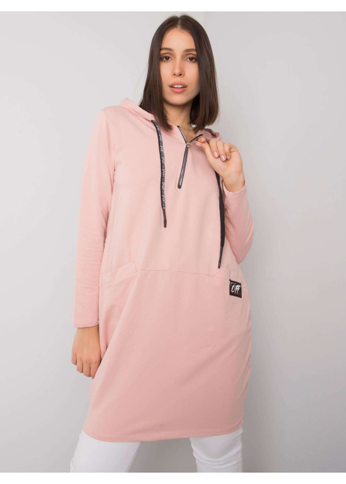 Dámska bavlnená tunika, kapucňa so sťahovacími šnúrkami, krátky zips, pohodlný voľný strih, 2 hlboké vrecká v prednej časti, našitá aplikácia na vrecku, dlhé rukávy, univerzálna veľkosť, materiál: 90% bavlna, 10% elastan, spôsob prania: pranie v práčke na 30°c, modelka má oblečenú jednu veľkosť. miery modelky: výška 174 cm, prsia 108 cm, pás 87 cm, boky 116 cm., rozmery tuniky sú merané naplocho: šírka v podpazuší - 47 cm, dĺžka rukáva - 58 cm, celková dĺžka - 86 cm..