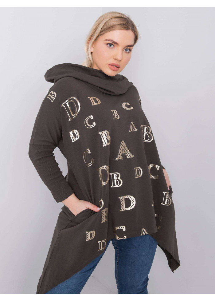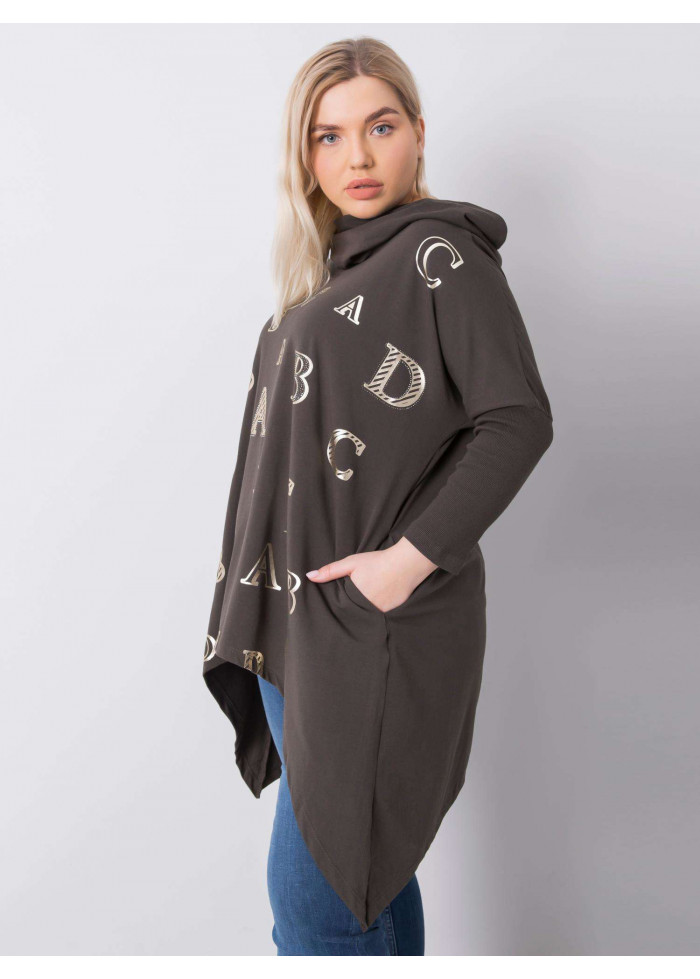 Dámska tunika s kapucňou, ozdobné prešívanie, ozdobná potlač, oversize asymetrický strih, spôsob prania: pranie v práčke na 30°c, materiál: 90% bavlna, 10% elastan, univerzálna veľkosť, miery modelky: výška: 172 cm, prsia: 102 cm, pás: 77 cm, boky: 118 cm, rozmer produktu meraného na plocho:, šírka pod plecami: 66 cm, dĺžka rukáva: 44 cm, celková dĺžka: 84 cm.
