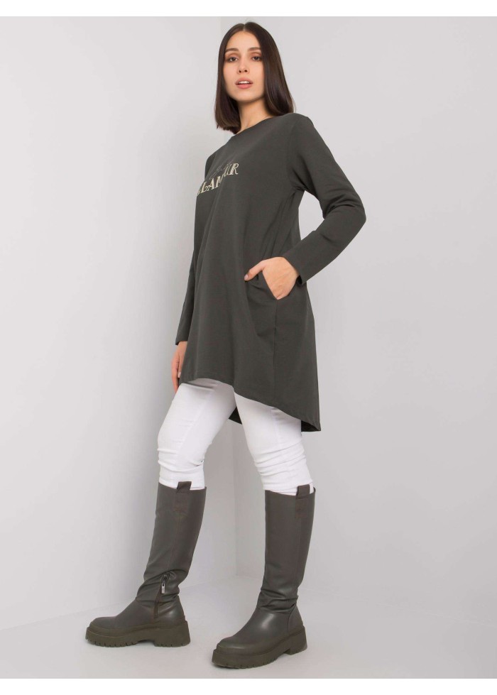 Tunika s potlačou, dlhý rukáv, 2 bočné vrecká, spôsob prania: pranie v práčke na 30°c, materiál: 90% bavlna, 10% elastan, univerzálna veľkosť, miery modelky: výška: 175 cm, prsia: 90 cm, pás: 67 cm, boky: 103 cm, rozmer produktu meraného na plocho:, šírka pod plecami: 53 cm, celková dĺžka: 87 cm, dĺžka rukávov: 57 cm.