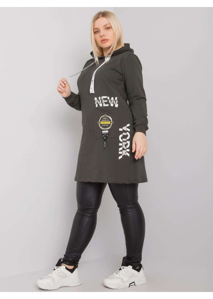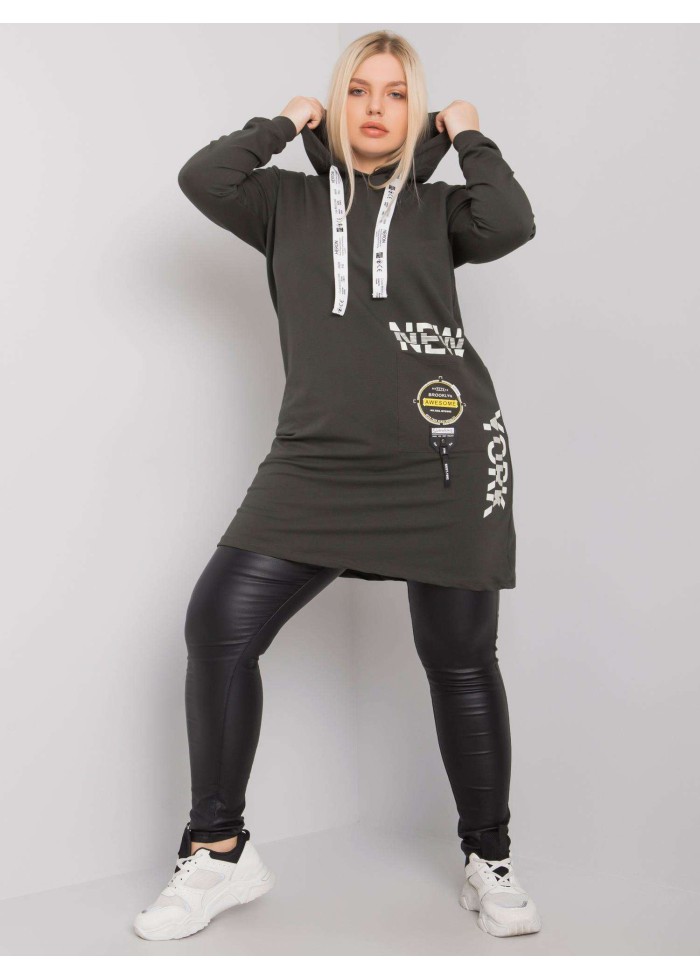 Dámska tunika s potlačou, mikinové šaty s kapucňou, ozdobná šnúrka na kapucni, 1 vrecko, lémy na koncoch rukávov, spôsob prania: pranie v práčke na 30°c, materiál: 90% bavlna, 10% elastan, univerzálna veľkosť, miery modelky: výška: 172 cm, prsia: 102 cm, pás: 77 cm, boky: 118 cm, rozmer produktu meraného na plocho:, šírka pod plecami: 54 cm, dĺžka rukáva: 64 cm, celková dĺžka: 89 cm.