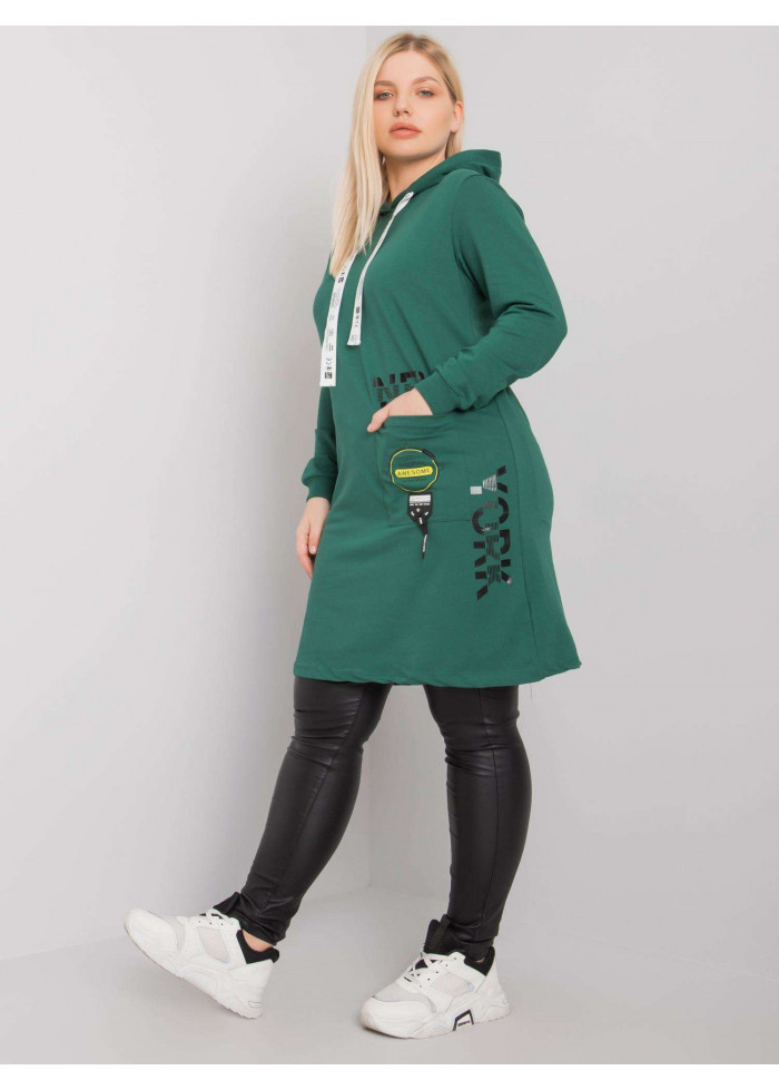 Dámska tunika s potlačou, mikinové šaty s kapucňou, ozdobná šnúrka na kapucni, 1 vrecko, lémy na koncoch rukávov, spôsob prania: pranie v práčke na 30°c, materiál: 90% bavlna, 10% elastan, univerzálna veľkosť, miery modelky: výška: 172 cm, prsia: 102 cm, pás: 77 cm, boky: 118 cm, rozmer produktu meraného na plocho:, šírka pod plecami: 54 cm, dĺžka rukáva: 64 cm, celková dĺžka: 89 cm.