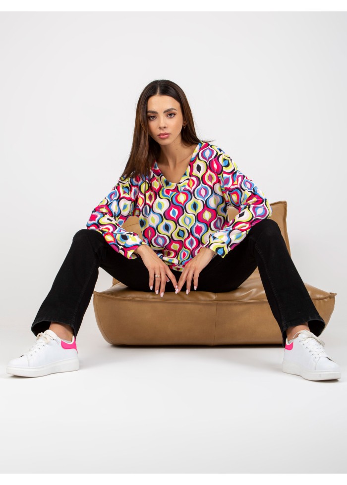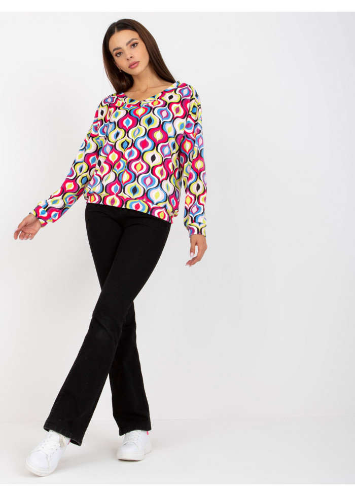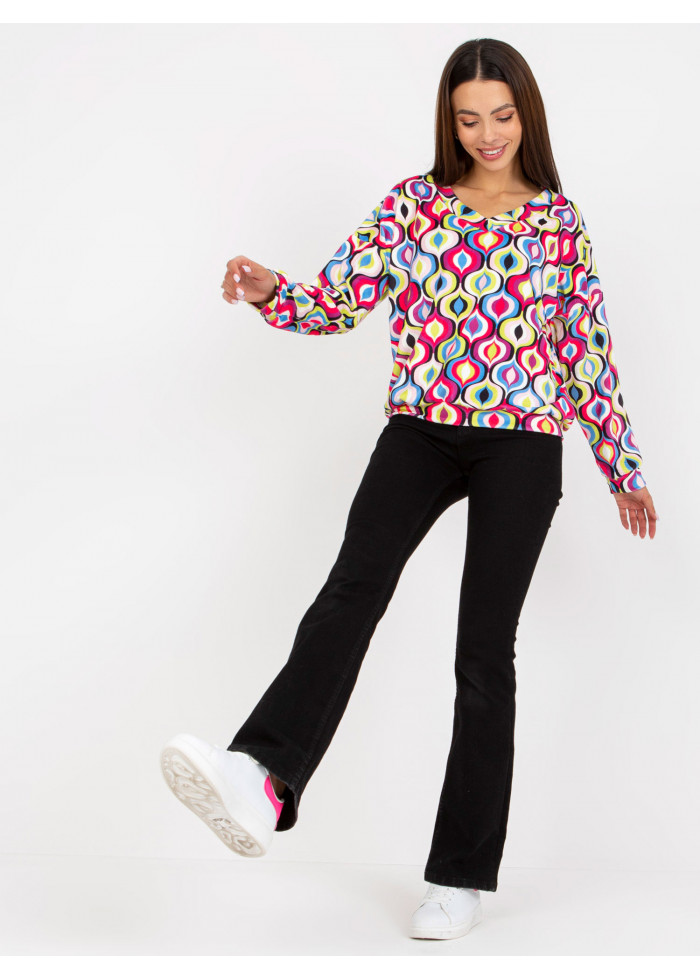 Dámske vzorované tričko, výstrih do v, lémy na koncoch rukávov a v spodnej časti, spôsob prania: pranie v práčke na 30°c, materiál: 90% viskóza, 10% elastan, modelka má na sebe veľkosť s/m, miery modelky: výška: 175 cm, prsia: 84 cm, pás: 61 cm, boky: 91 cm, rozmer produktu meraného na plocho, vo veľkosti s/m:, šírka pod plecami: 61 cm, dĺžka rukáva: 55 cm, celková dĺžka: 59 cm.